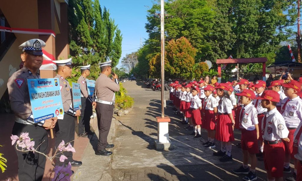 MANADO | Satuan Lalu Lintas (Satlantas) Polresta Manado, yang dipimpin oleh Kanit Kamsel IPTU Repi Samel, melaksanakan sosialisasi dan kampanye keselamatan berlalu lintas serta penanaman nilai-nilai pemolisian sejak dini pada hari ini, Selasa (tanggal), di tiga lembaga pendidikan Katolik di Manado, yaitu TK Katolik Santa Anna, SD Katolik 14 Santo Paulus, dan SMP Katolik Santo Dominiko, Selasa (20/8/2024).