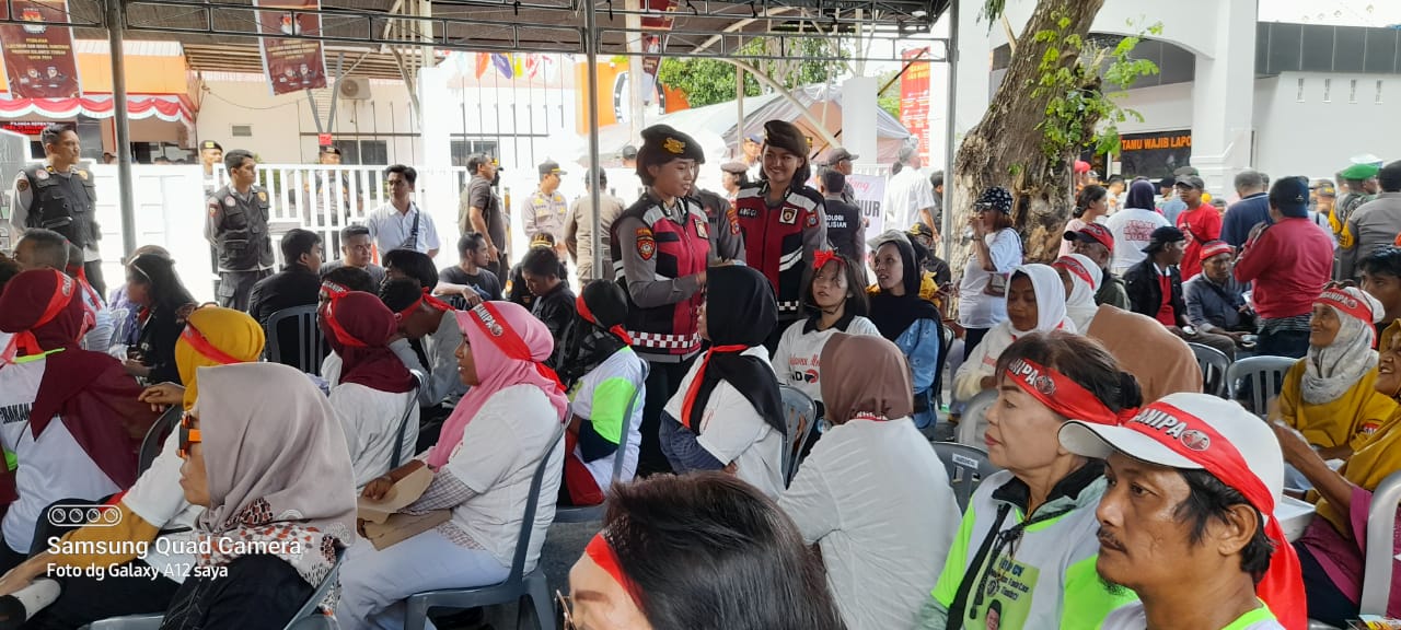 Dengan semangat Polri Presisi Polwanq Polda Sulteng melakukan aksi humanis membagikan gelas air mineral kepada massa yang bertahan didepan KPU.