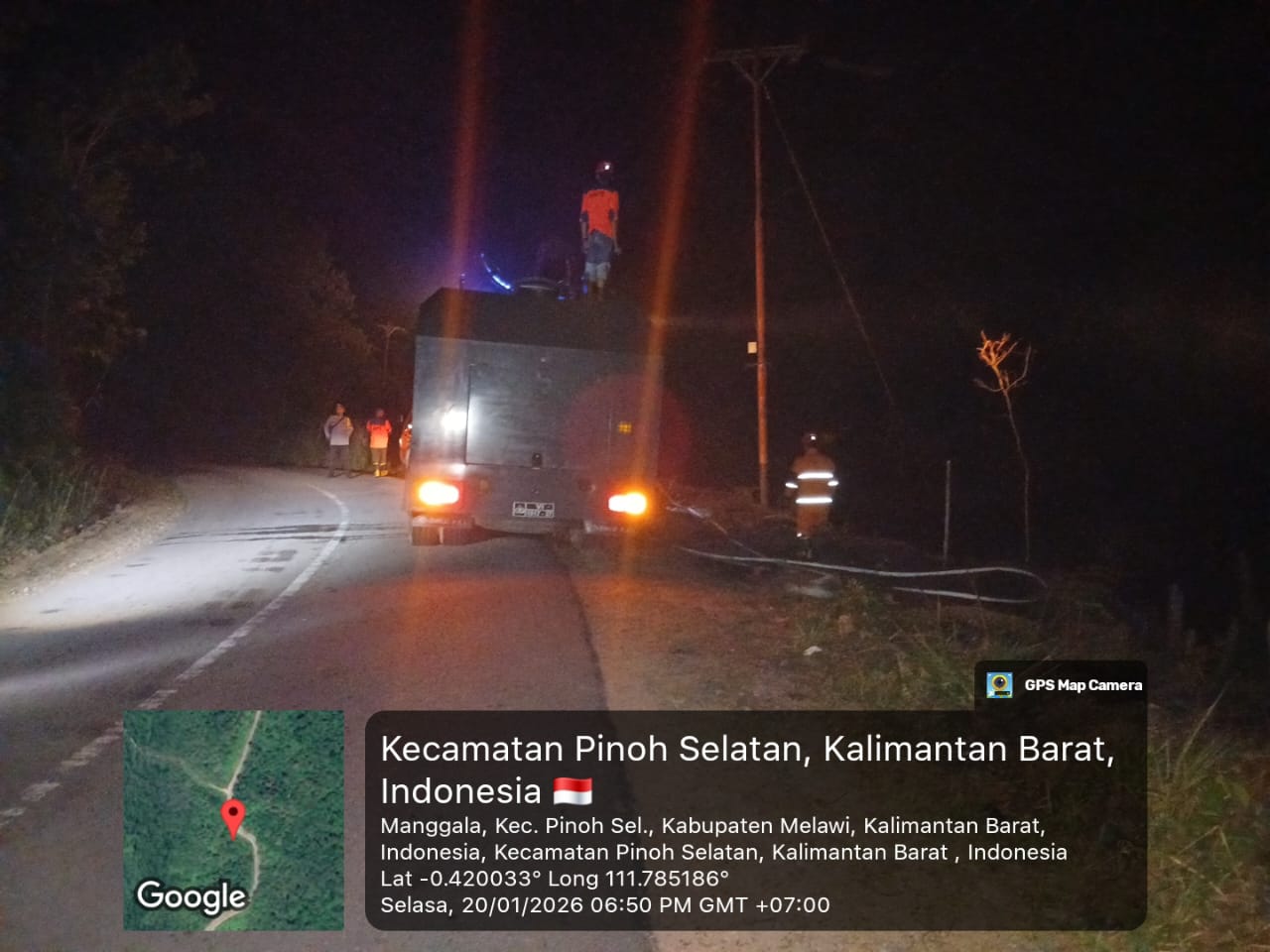 Polres Melawi Polda Kalbar – Kebakaran hutan dan lahan yang terjadi di Jl. Provinsi Nanga Pinoh–Kota Baru Km 13, Selasa (29/1/2026), berhasil dipadamkan berkat kesigapan tim gabungan Polres Melawi, BPBD Kabupaten Melawi, dan Polsek Nanga Pinoh. Dalam proses pemadaman tersebut, mobil Armoured Water Cannon (AWC) Polres Melawi menjadi tumpuan utama petugas di lapangan.