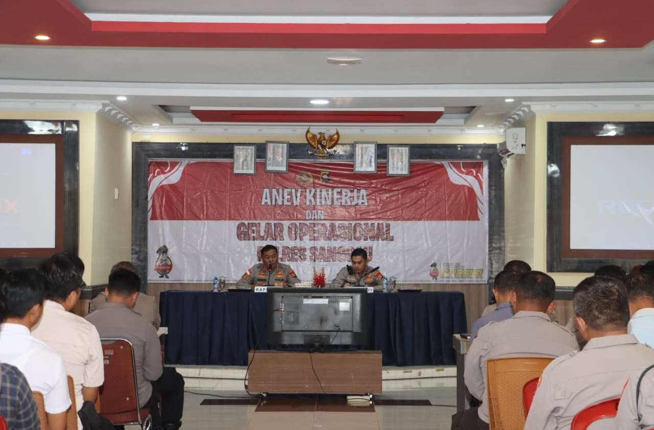 Anev Kinerja dan Gelar Operasional ini dipimpin langsung oleh Kapolres Sanggau AKBP Sudarsono, S.I.K., M.Si., didampingi Wakapolres Sanggau Kompol Radian Andy Pratomo, S.I.K., M.H., serta dihadiri para Pejabat Utama (PJU) Polres Sanggau, Kapolsek jajaran, Kaurmintu, Kanit Opsnal, Kasium, Kanit Intelkam, dan Kanit Reskrim Polsek jajaran.