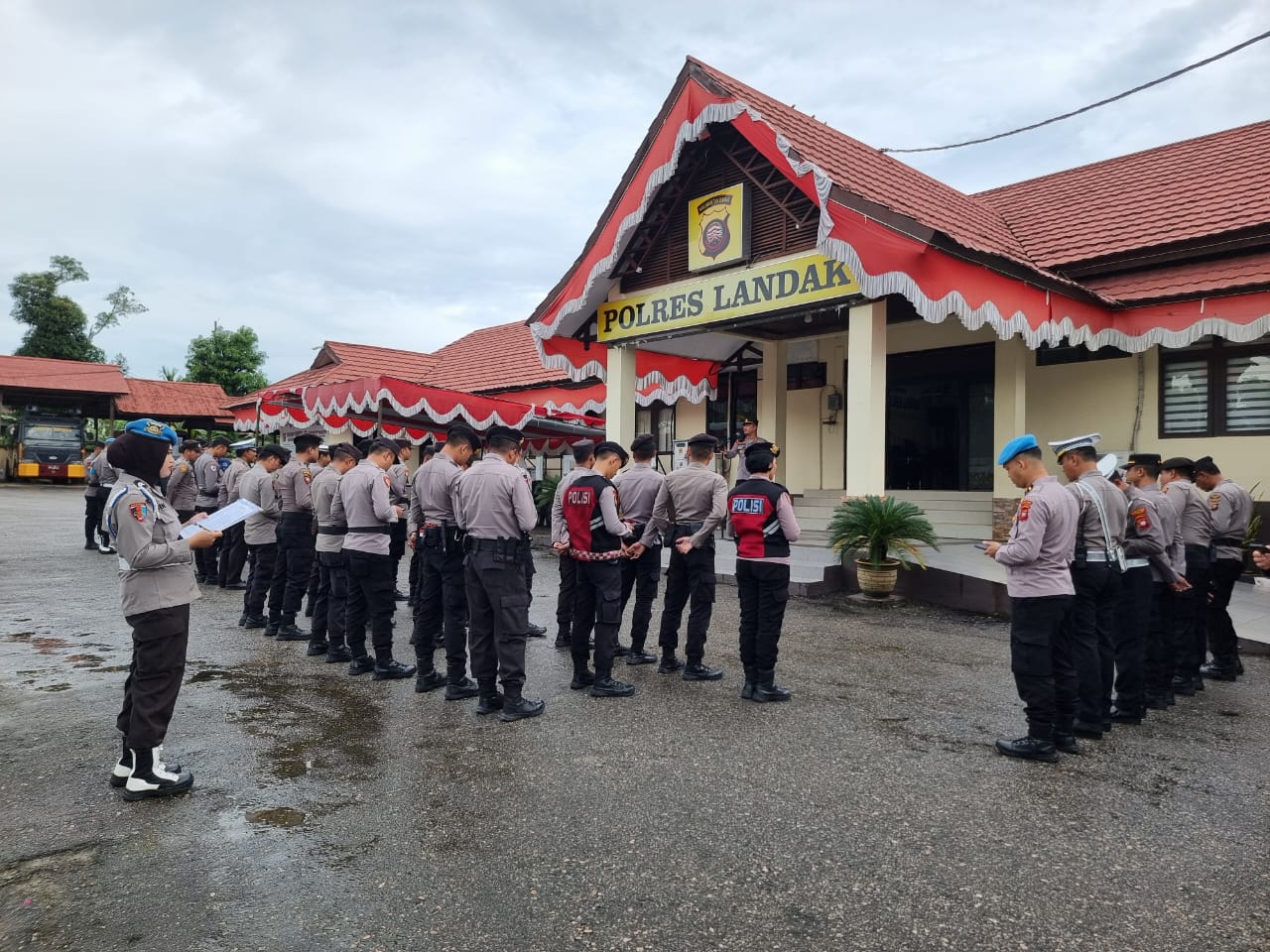 Polres Landak ~ Polda Kalbar ~ Sie Humas ~ Dalam rangka mengantisipasi potensi gangguan keamanan menjelang Pemilihan Kepala Daerah (Pilkada) serta pendaftaran calon Bupati dan Wakil Bupati yang akan berlangsung pada tanggal 28 hingga 29 Agustus 2024 di kantor KPU, Polres Landak menggelar Apel Perdana Konsolidasi Operasi Mantap Praja (OMP) 2024. Apel ini dilaksanakan di halaman Mapolres Landak yang dipimpin langsung oleh Karendal Ops AKP Dwi Raharjo yang diikuti oleh para pejabat OMP serta seluruh personel yang terlibat dalam Operasi Mantap Praja, ” Selasa ( 27/8/2024)
