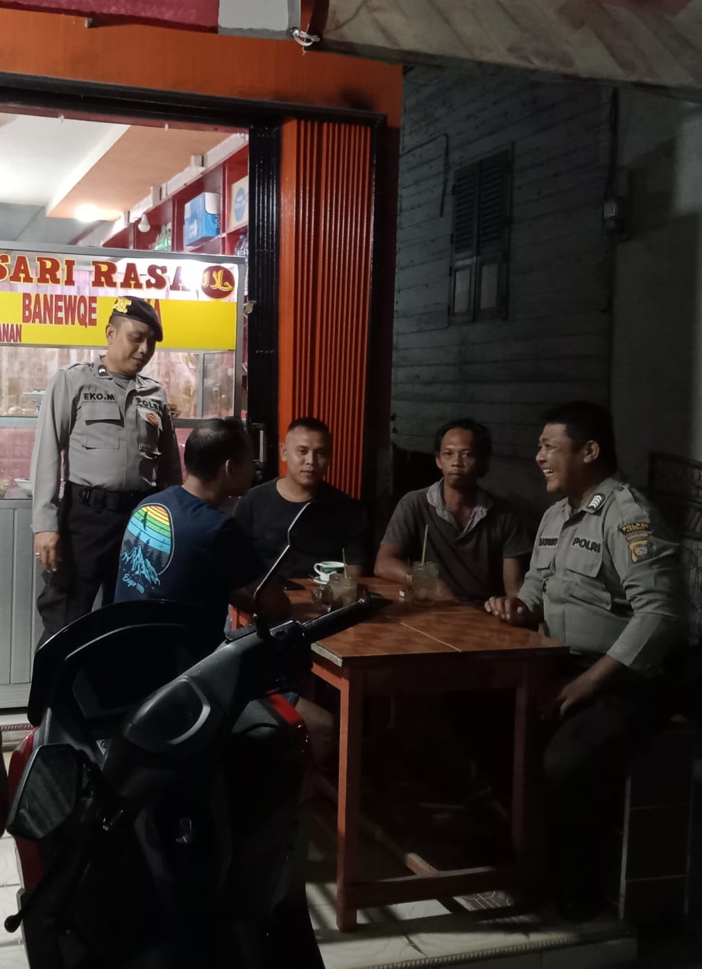 Pada saat Anggota patroli menyambagi warga yang sedang nongkrong di pingir jalan raya dan memberikan imbauan agar tidak melakukan trek-trekan atau balapan liar yang dapat mengganggu ketertiban umum.