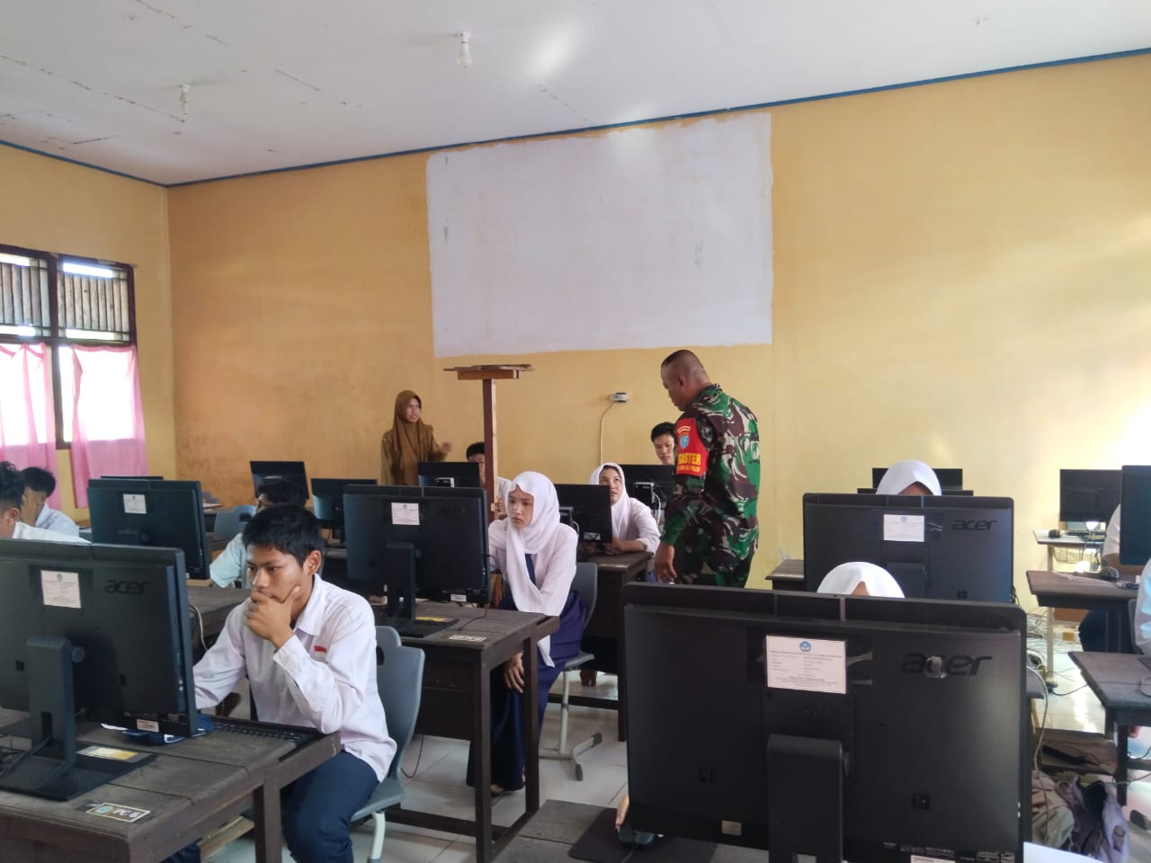 “Kami hadir untuk memastikan kegiatan berjalan aman dan tertib, serta memberikan semangat kepada para siswa agar dapat mengerjakan ujian dengan baik,” ungkap Babinsa.