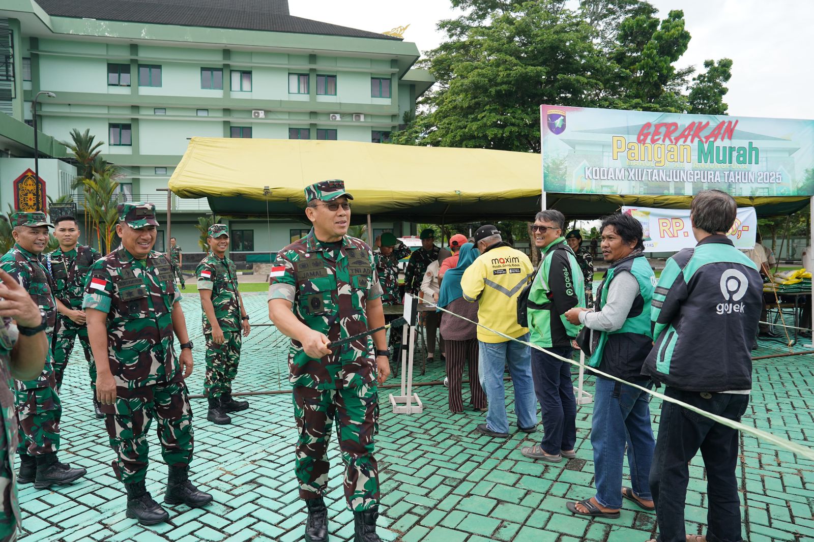 Kubu Raya – Dalam rangka membantu masyarakat dalam pemenuhan pangan sebagai kebutuhan dasar, Kodam XII/Tanjungpura menggelar Gerakan Pangan Murah (GPM) . Bertempat di Lapangan Tidayu, Makodam XII/Tpr, Kamis (4/9/2025).