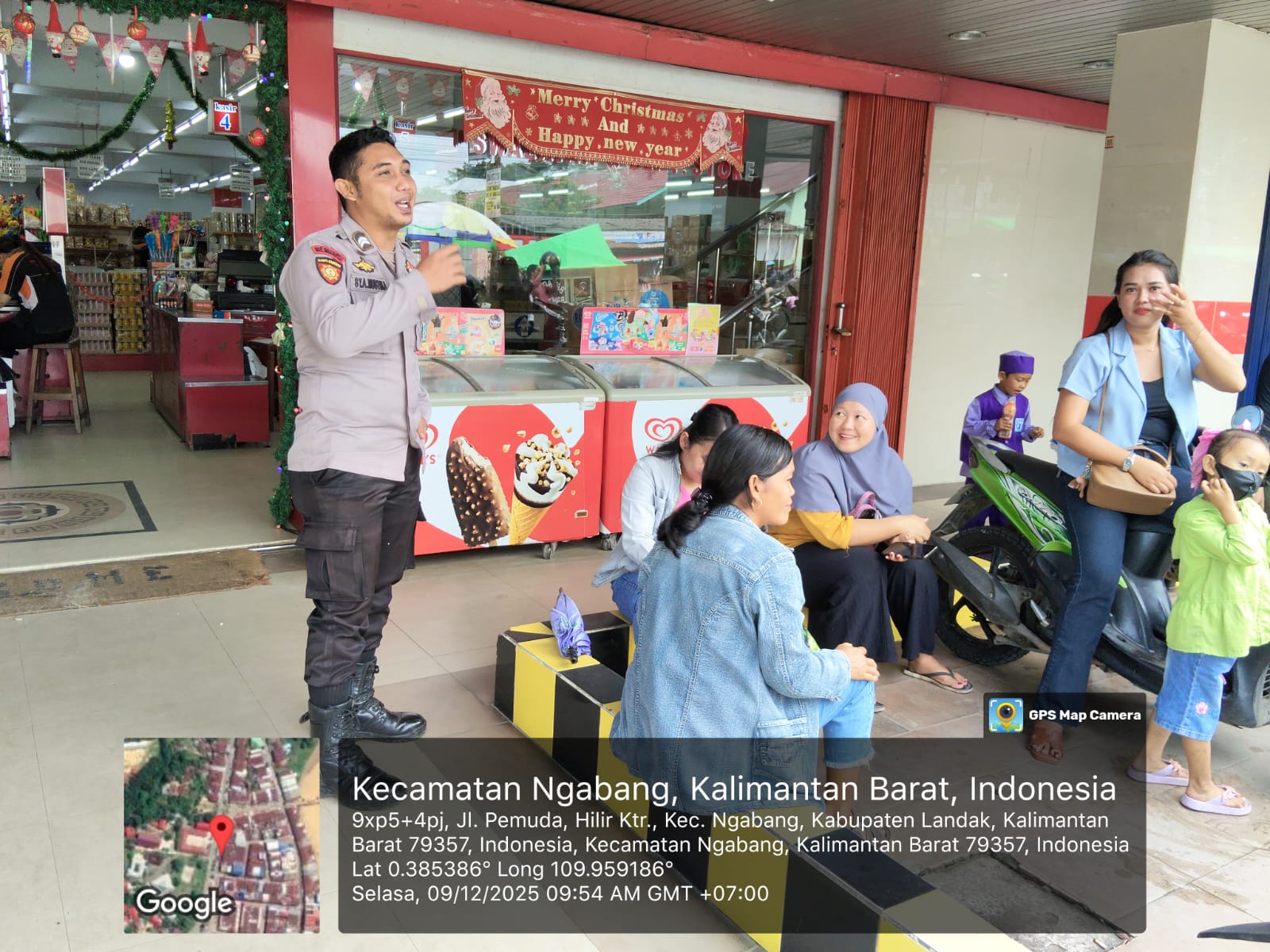 Polsek Ngabang – Polres Landak – Polda Kalbar, Personil Piket jaga Polsubsektor Jelimpo dan Polsek Ngabang melaksanakan giat patroli dialogis dan menyambangi masyarakat yang sedang melaksanakan aktivitas rutinitas, Kegiatan patroli ini dilakukan untuk memastikan kondusifitas wilayah berjalan aman dan Kondusif. Selasa (9/12/2025).
