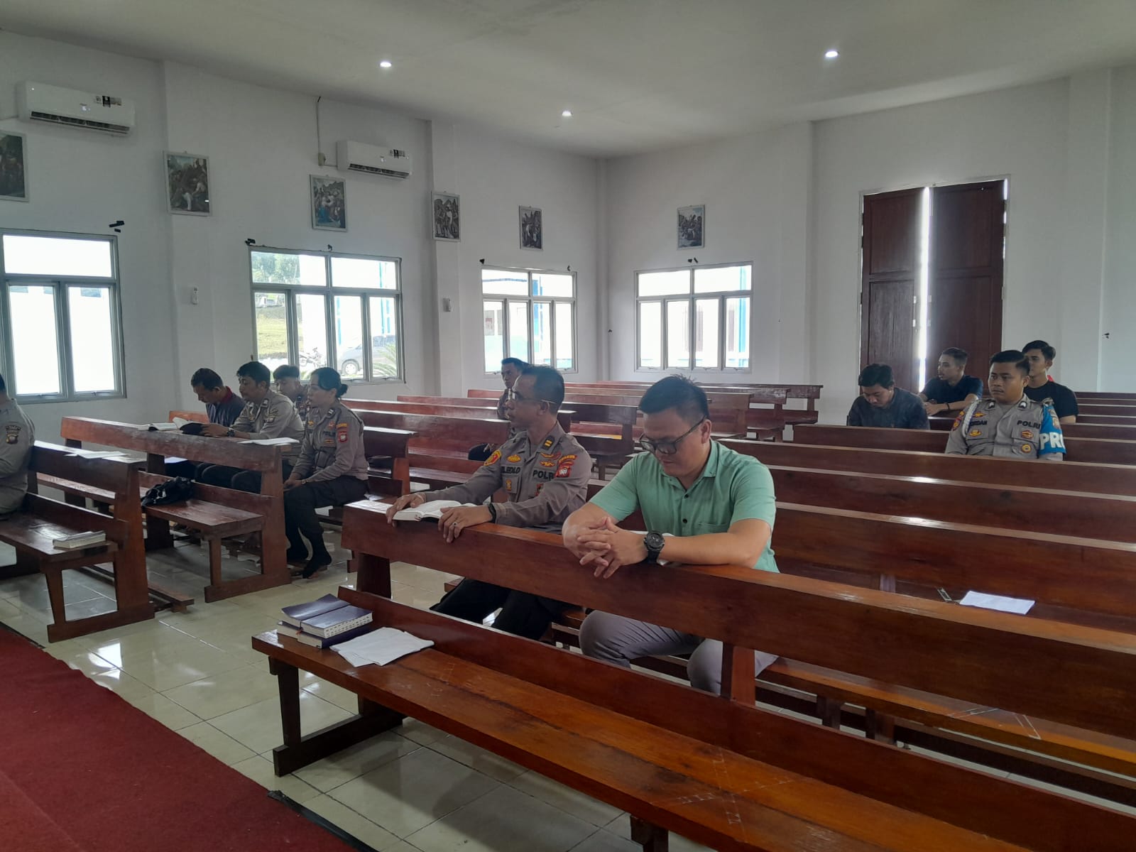 Polres Landak ~ Polda Kalbar ~Pada hari Kamis, tanggal 16 Mei, sebuah kegiatan binrohtal menggelora di Polres Landak. Iptu Rinto beserta anggota Polres yang beragama Katolik dan Kristen turut serta dalam acara tersebut, yang digelar di gereja ST Ignatius Loyola Polres Landak. Dibimbing oleh Pendeta Elke,Acara ini menjadi momentum yang mempererat tali persaudaraan antara anggota Polres yang memiliki keyakinan beragama.