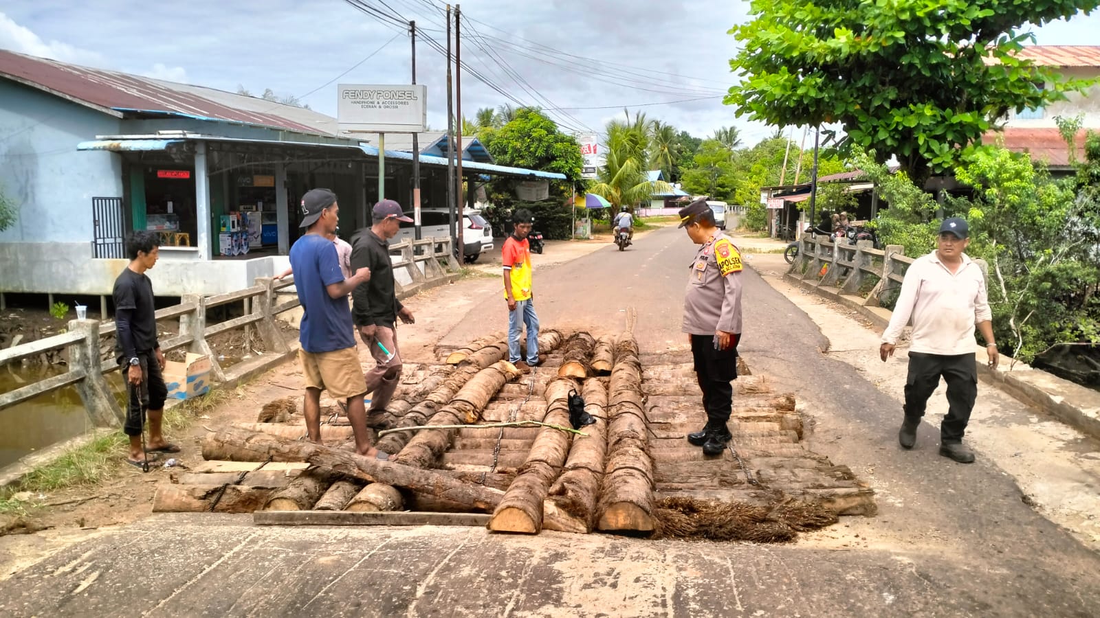” Kami mendapatkan laporan dari warga bahwa jembatan ini sudah miring dan dalam kondisi berlubang sehingga sangat rawan untuk dilewati. Oleh karena itu, kami bersama Forkopimcam langsung turun ke lapangan untuk melakukan perbaikan agar akses masyarakat tidak terganggu dan tetap aman,” ujar AKP Helwani.