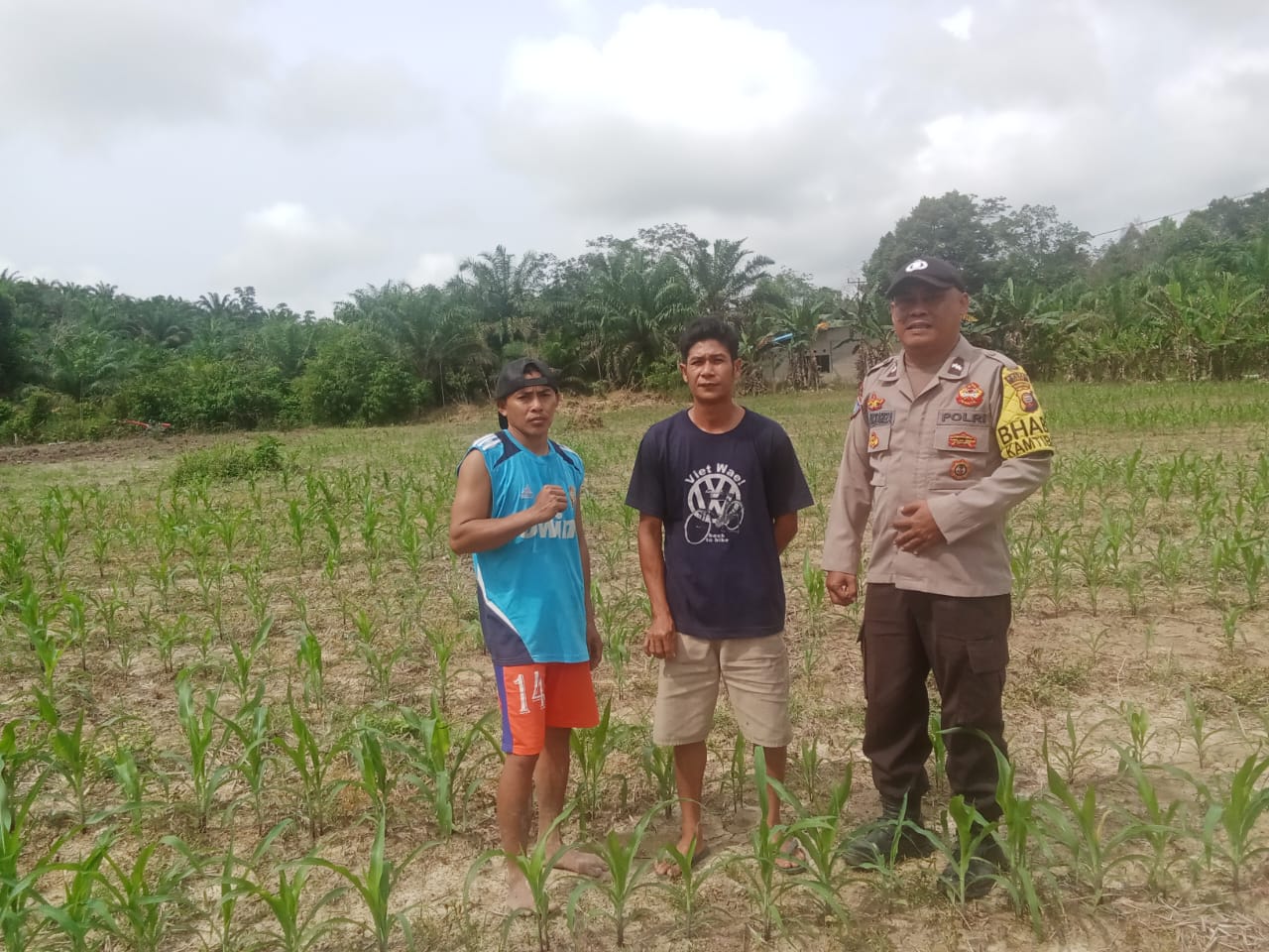 LANDAK – AIR BESAR, Bhabinkamtibmas Polsek Air Besar Polres Landak Polda Kalbar AIPDA Dwi Oktariza bersama dengan Petugas Penyuluh Lapangan (PPL) Desa Sepangah Antonius, S.P., melaksanakan pemantauan terhadap tanaman jagung milik Sdr. Aluk Amus di Bernian Dusun Sepangah, Desa Sepangah, Kecamatan Air Besar, Kabupaten Landak, Rabu (19/2/25).
