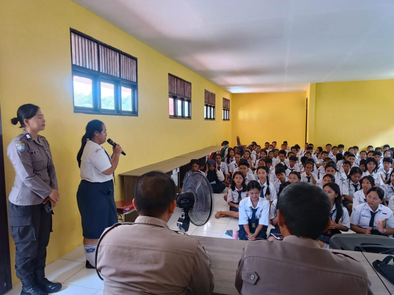 “Kami menghimbau kepada kepada anak-anak sebagai generasi penerus bangsa di dunia pendidikan terkait kenakalan remaja supaya siswa tetap bisa menjaga diri untuk bergaul dengan orang lain yang belum dikenal agar tidak terjerumus ke hal-hal yang negatif. Selain itu, kami juga menghimbau kepada kalian agar paham dengan undang-undang lalu lintas sehingga meminimalisir pelanggaran berlalu lintas,” ujar Aipda Himori.