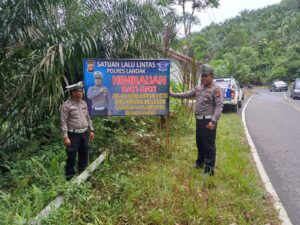 Pemasangan Spanduk Himbauan Kamseltibcarlantas oleh Sat Lantas Polres Landak: Keselamatan Jadi Prioritas
