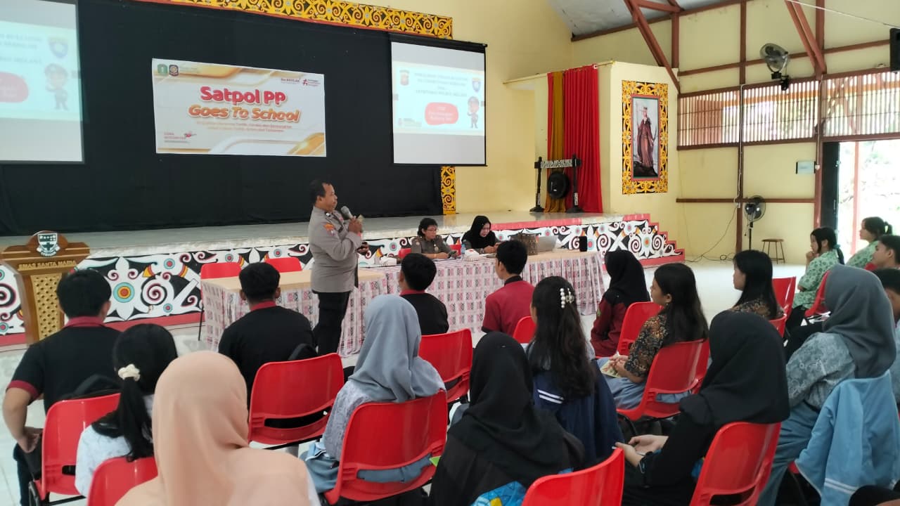 Polres Melawi Polda Kalbar – Upaya menciptakan lingkungan sekolah yang aman, nyaman, dan bebas dari perundungan terus dilakukan. Rabu(4/2), PS. Kanit Binkamsa Satbinmas Polres Melawi Aiptu Supar’am melaksanakan sosialisasi Anti Bullying kepada para pelajar dalam kegiatan Satpol PP Goes To School yang digelar di Aula SMA Santa Maria, Kecamatan Nanga Pinoh.