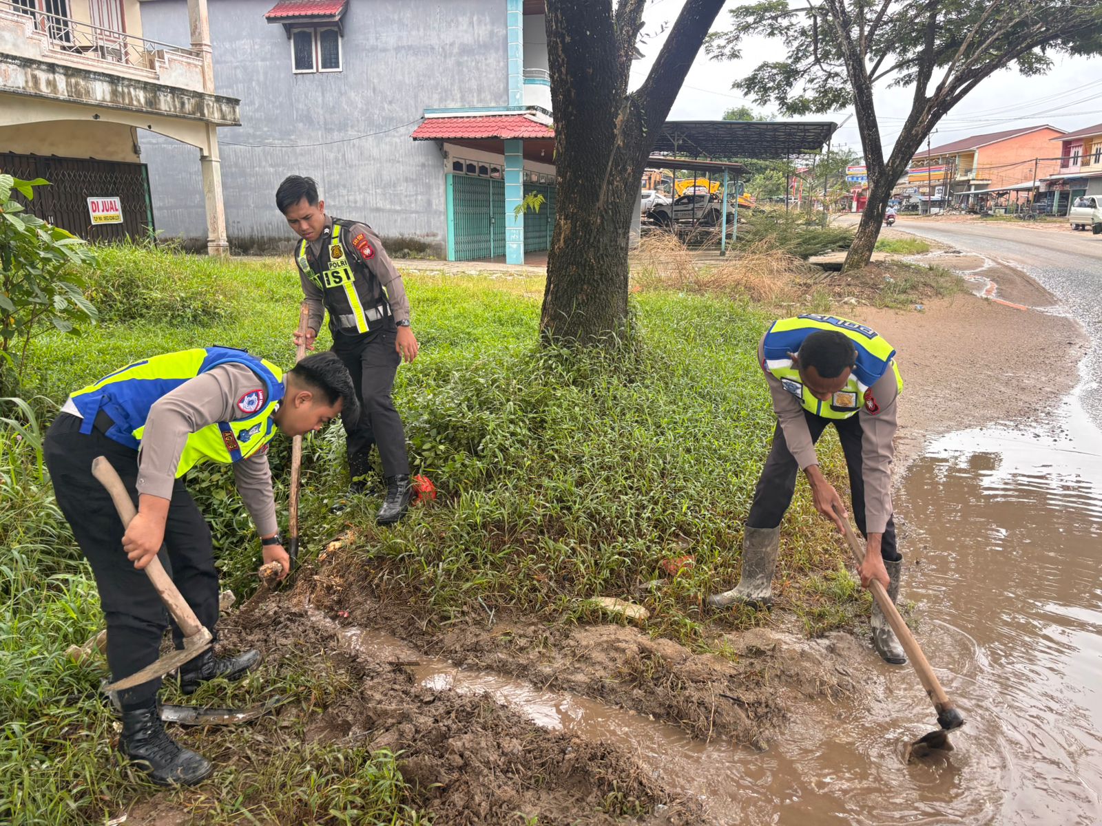 Polres Melawi Polda Kalbar – Satuan Lalu Lintas (Satlantas) Polres Melawi melakukan aksi cepat dengan membersihkan dan membuat saluran air di sejumlah ruas jalan yang kerap mengalami genangan. Selasa (09/12). Langkah ini dilakukan sebagai upaya pencegahan potensi terjadinya kecelakaan lalu lintas (laka lantas), terutama saat curah hujan meningkat.