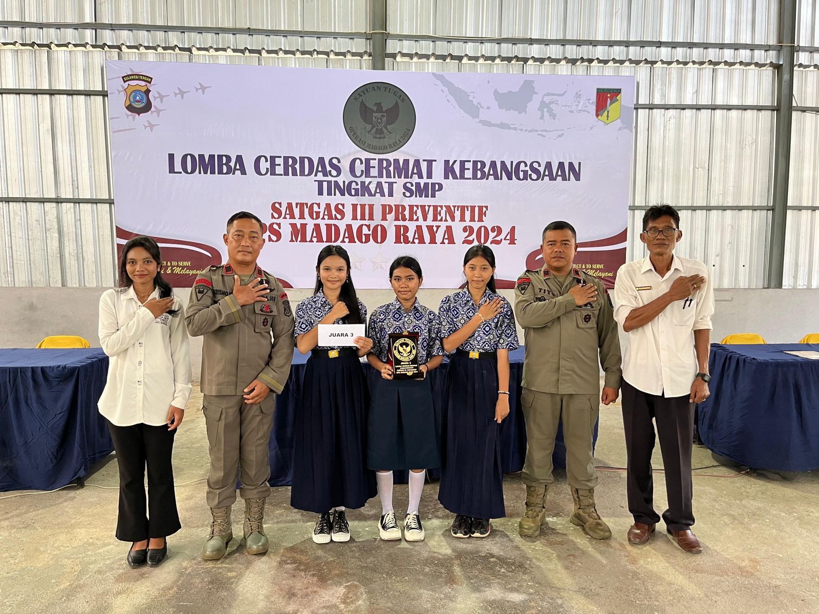 Poso – Dalam upaya memperdalam pemahaman tentang nilai-nilai kebangsaan dan menumbuhkan semangat nasionalisme di kalangan pelajar, Satgas III Preventif Ops Madago Raya menggelar lomba cerdas cermat kebangsaan tingkat SMP Se-Kecamatan Poso Pesisir Bersaudara di Hanggar Poskotis Tokorondo, Kecamatan Poso Pesisir, pada Rabu (20/11/2024).