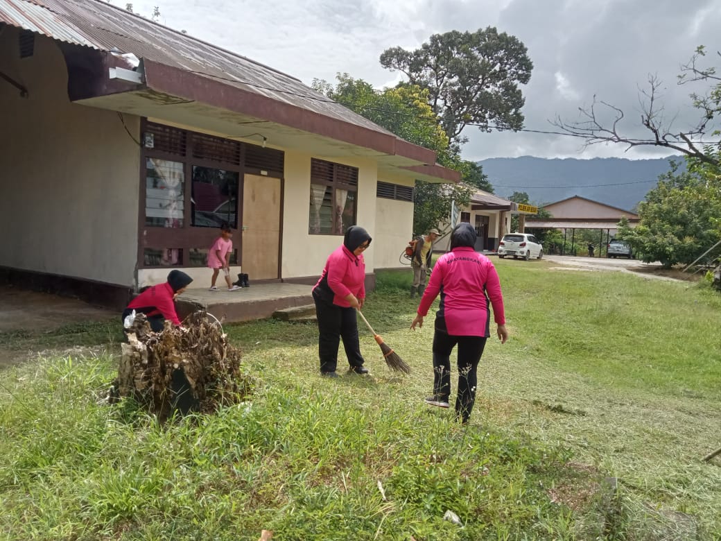 LANDAK – AIR BESAR, Bhayangkari Ranting Polsek Air Besar bersama Personel Polsek laksanakan Kerja Bakti untuk Kebersihan dengan sasaran Sampah dan rumput di sekitar Polsek Air Besar, Kamis (20/6/24) Pagi.