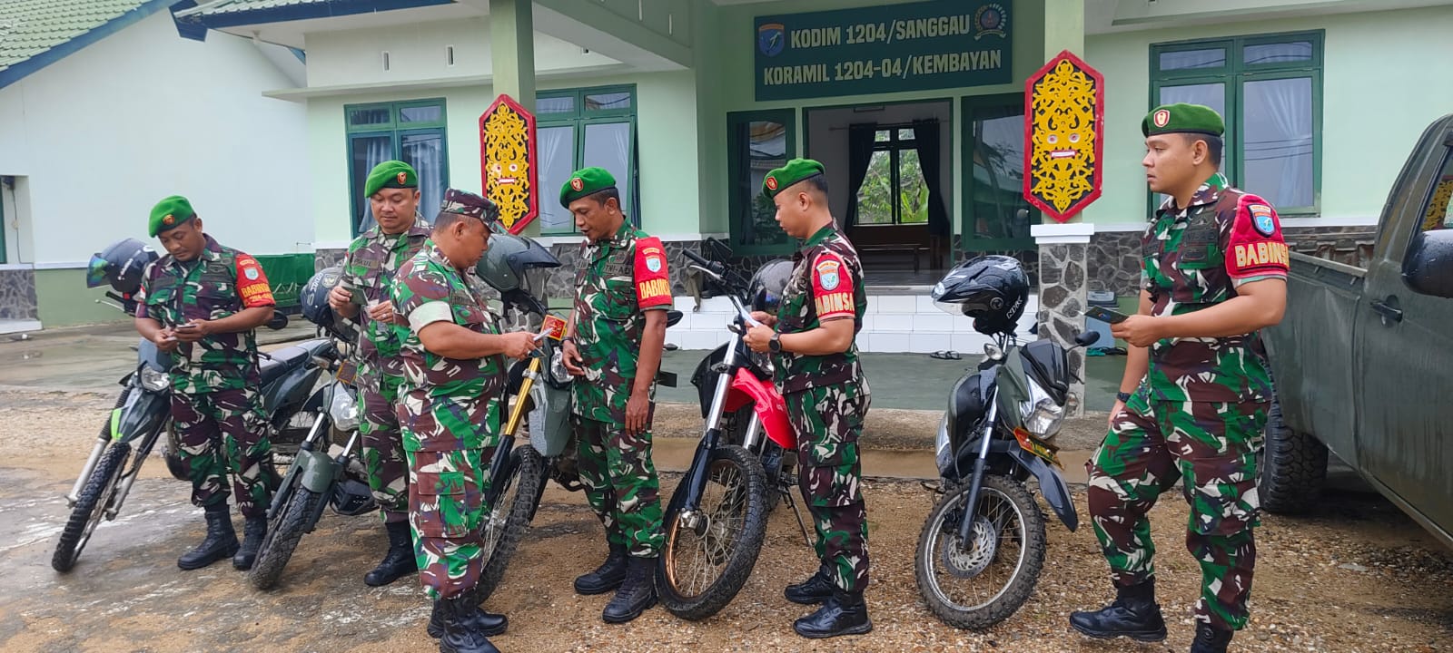 Sanggau – Dalam rangka menegakkan disiplin dan tertib administrasi di lingkungan satuan, Danramil 1204-04/Kembayan, Lettu Inf Hendrikus, melaksanakan kegiatan pemeriksaan kelengkapan surat-surat kendaraan dinas roda dua (R2) dan roda empat (R4) milik anggota Koramil 1204-04/Kembayan.