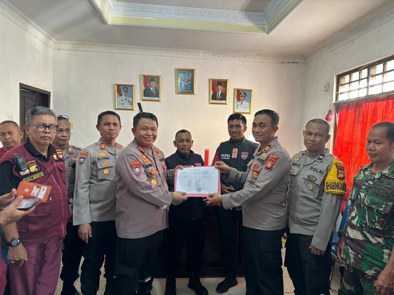 Dirbinmas mengatakan jika kedatangannya selain melaksanan evaluasi penggunaan sistem pelaporan, juga bermaksud memberikan sarana kontak berupa rompi FKPM dan alat alat patroli Sat Kamling.