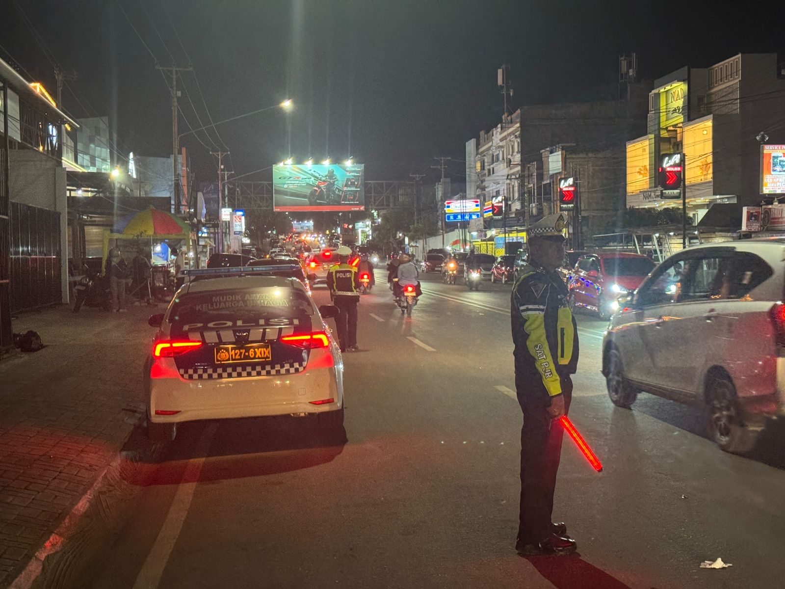 Rangkaian kegiatan pengamanan ini berlanjut hingga malam hari mulai pukul 19.30 WITA. Subsatgas Patroli kembali menyisir kawasan Jalan Gatot Subroto, Jalan R.A. Kartini, dan sekitarnya untuk memastikan situasi keamanan serta ketertiban lalu lintas tetap kondusif saat aktivitas masyarakat meningkat pada malam hari.