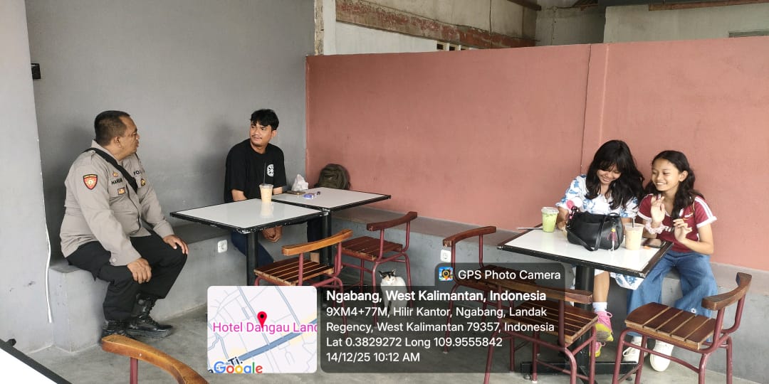 Polsek Ngabang – Polres Landak – Polda Kalbar, Patroli dialogis dengan berjalan kaki ditempat-tempat masyarakat yang sedang melaksanakan aktivitas, Langkah ini bertujuan agar setiap informasi atau permasalahan di lingkungan masyarakat dapat segera diketahui dan ditindaklanjuti oleh aparat kepolisian. itu merupakan Strategi pihak Kepolisian khususnya Polsek Ngabang Untuk menciptakan situasi yang kondusif ditengah masyarakat. Minggu, (14/12/2025)