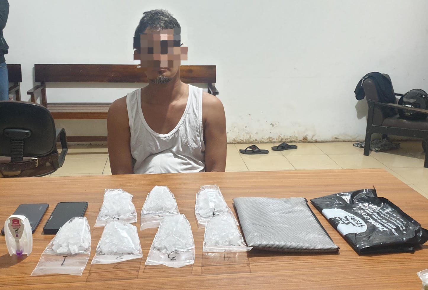 Ia menambahkan bahwa setelah ditangkap dan digeledah, Tim Gabungan berhasil menyita barang-barang yang dibawa oleh pelaku antara lain 7 (tujuh) bungkus plastik klip transparan diduga berisi narkotika jenis sabu dengan berat bruto 750 (tujuh ratus lima puluh) gram atau 7,5 Ons, 1 (satu) buah dompet jinjing warna silver, 1 (satu) kantong plastik warna hitam bertuliskan Zhezha store, 1 (satu) unit hp android merk vivo warna hitam, 1 (satu) unit hp android merk Samsung.