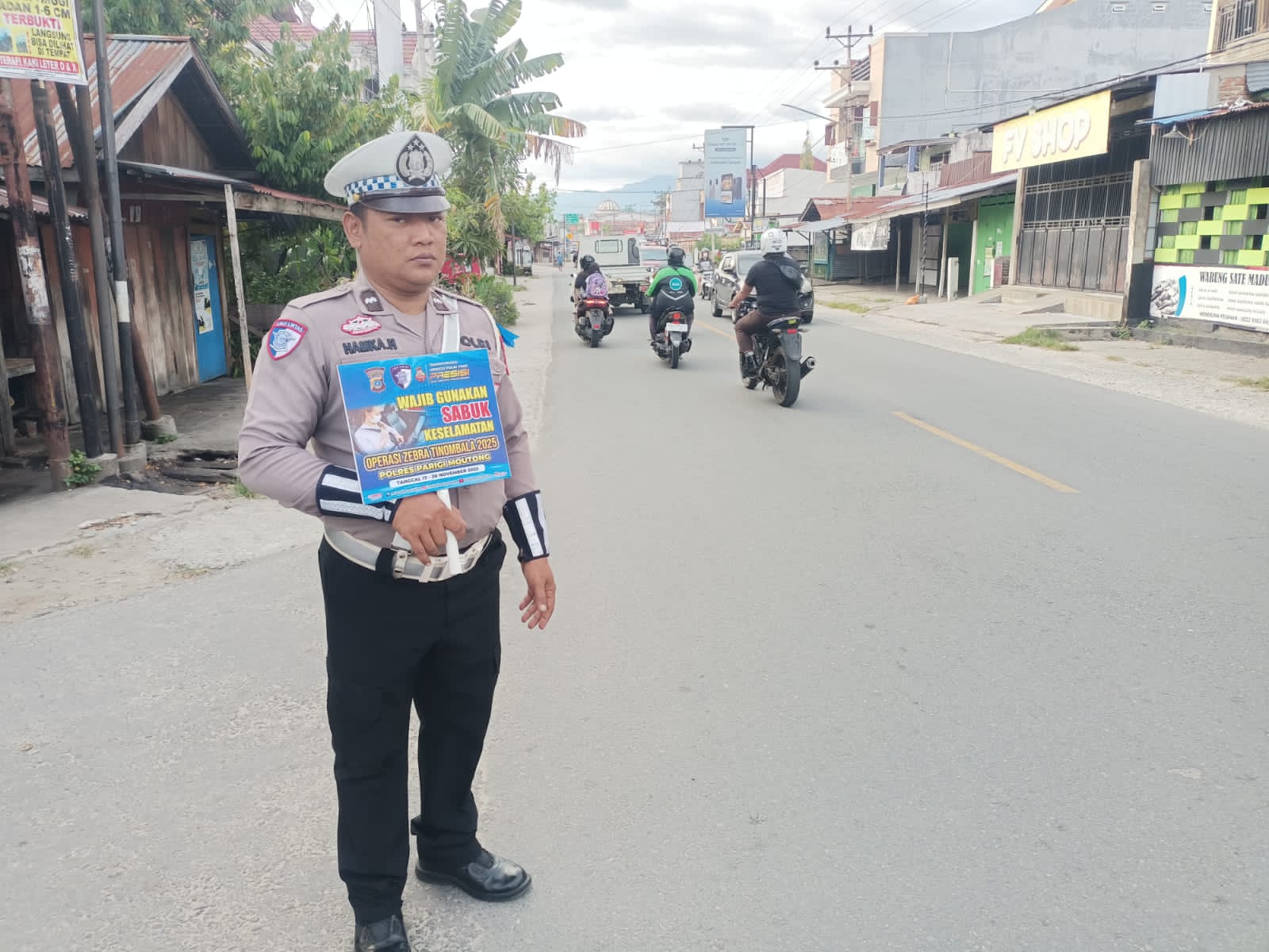 Parigi Moutong — Pagi di Simpang Empat Telkom, Rabu (26/11/2025), tampak lebih dinamis dari biasanya. Sejak pukul 07.00 Wita, personel Unit Kamsel Sat Lantas Polres Parigi Moutong sudah siaga memberikan edukasi keselamatan kepada para pengguna jalan dalam rangka Operasi Zebra Tinombala 2025.