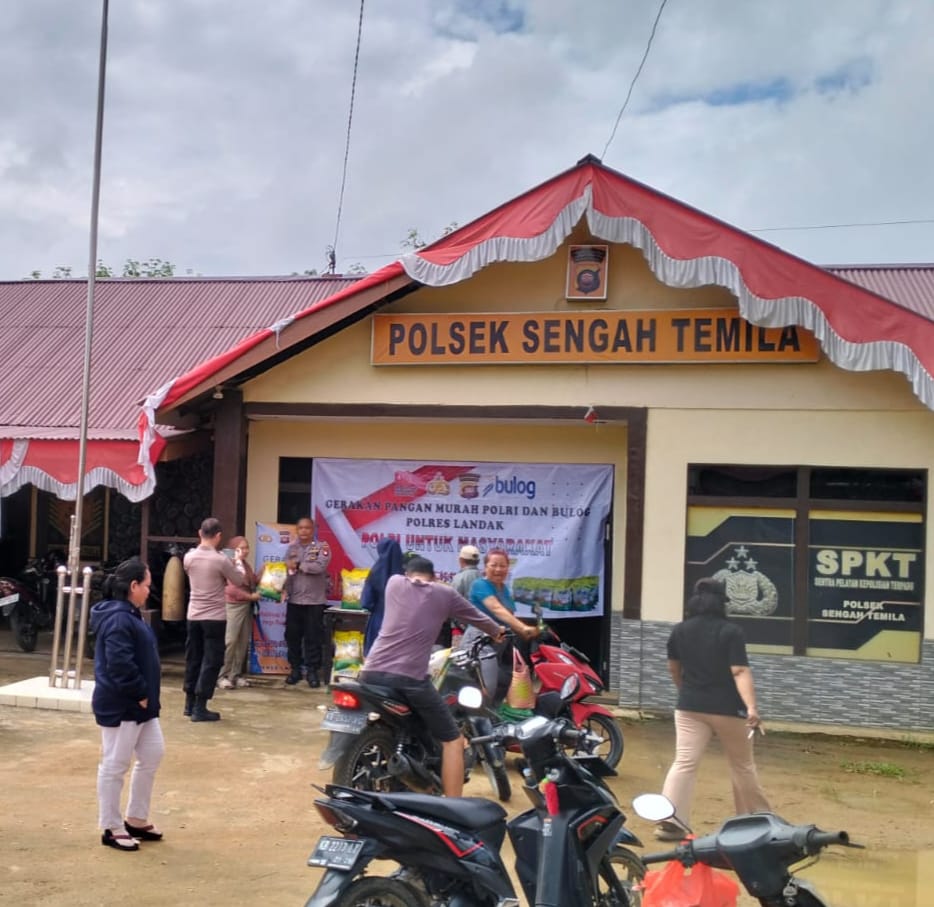 Polsek Sengah Temila ~Polres Landak ~ Polda Kalbar ~ Bertempat di Mako Polsek Sengah Temila, Dusun Jere, Desa Pahauman, Kecamatan Sengah Temila, Kabupaten Landak, digelar kegiatan Gerakan Pangan Murah hasil kerja sama Polri melalui Polres Landak dengan Bulog, Kamis (4/9/2025).