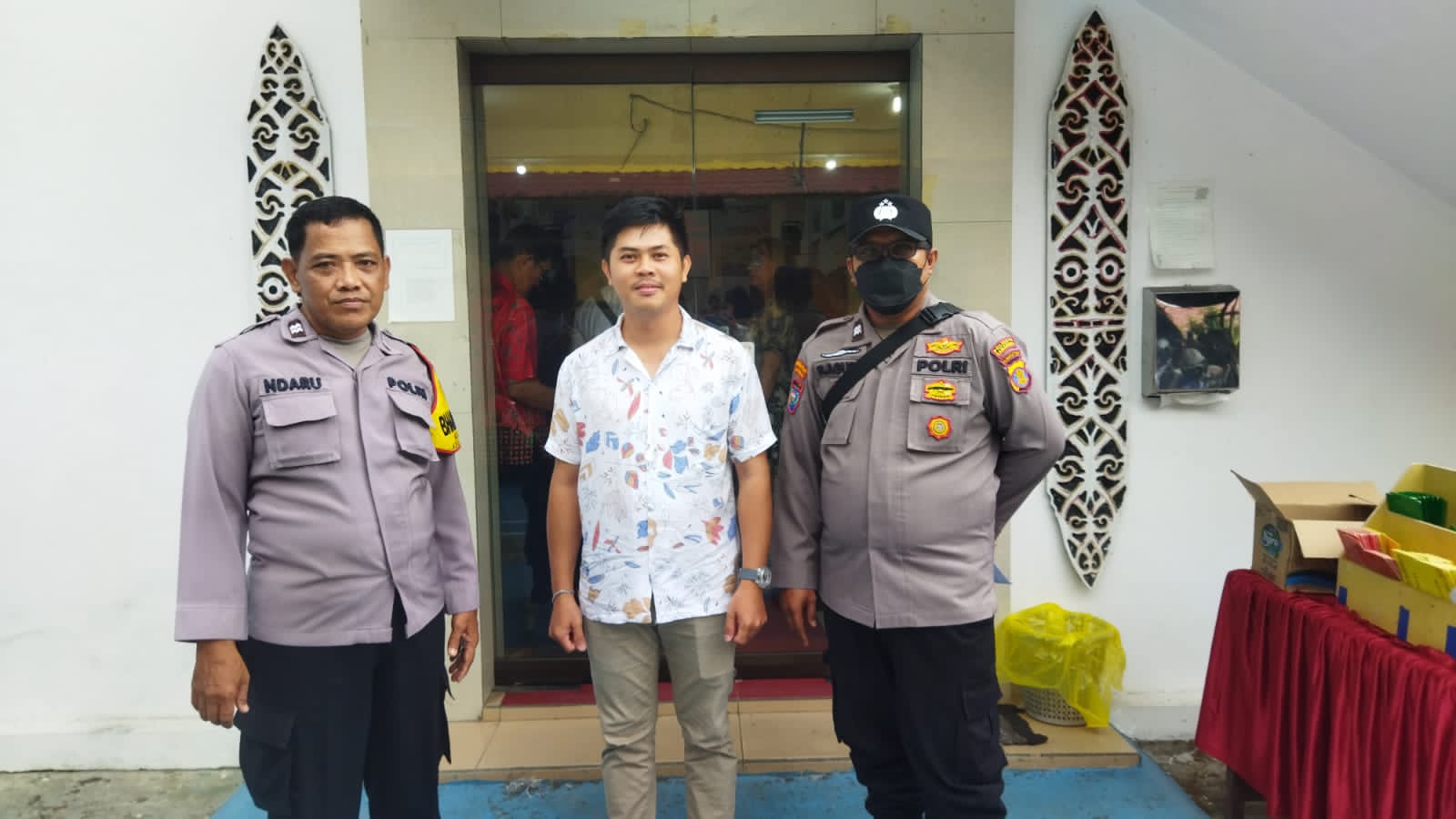 Personel terlihat melaksanakan pengamanan dengan penuh tanggung jawab, memastikan kegiatan ibadah berlangsung aman, tertib, dan khidmat bagi seluruh jemaat.