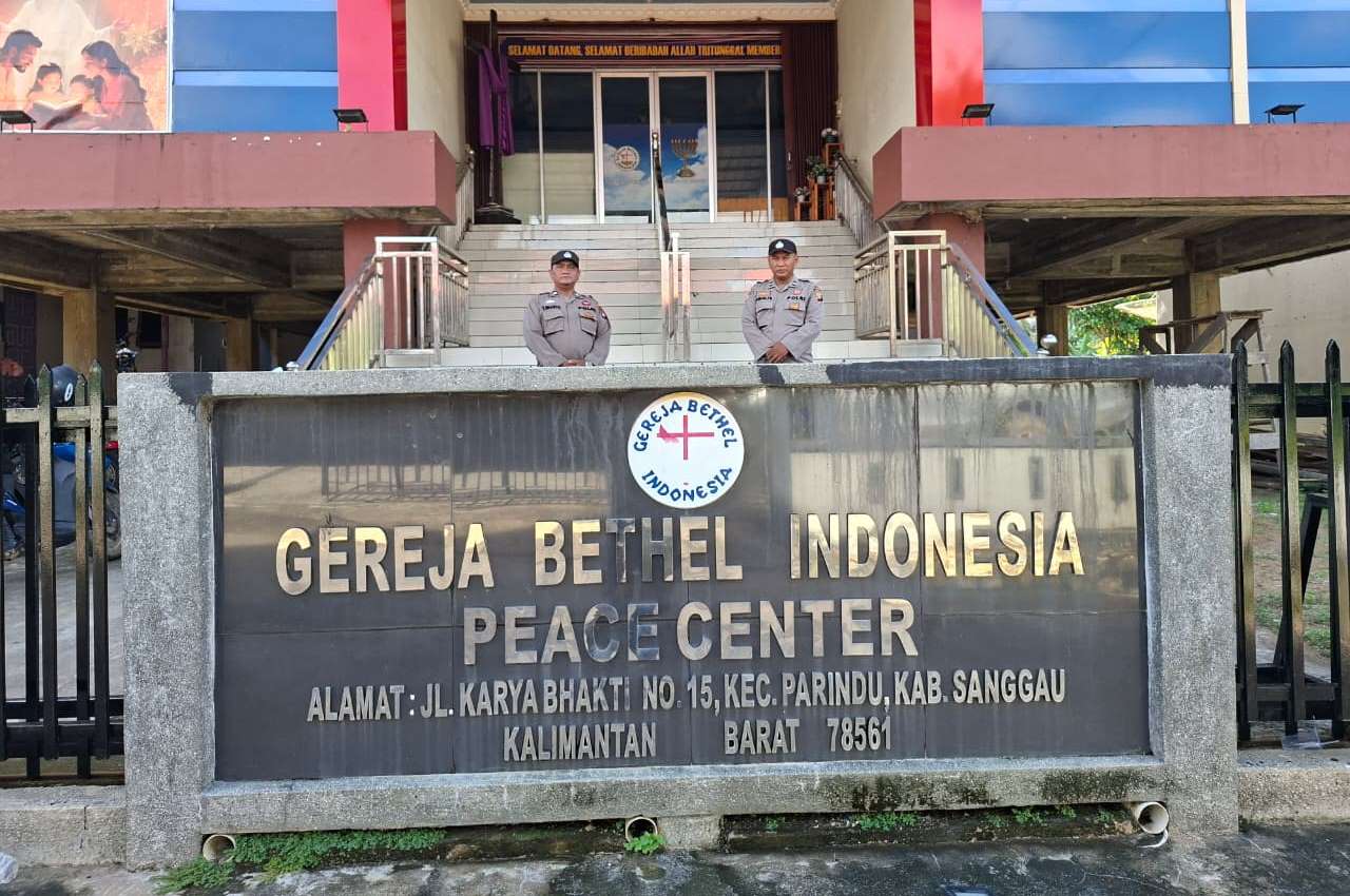 Selain itu, pengamanan juga dilakukan di Gereja Bethel Indonesia (GBI) yang berlokasi di Dusun Seloon, Desa Pusat Damai, Kecamatan Parindu. Ibadah yang dipimpin oleh Pendeta Roy Sambeka, S.Th., dan diikuti sekitar 200 jemaat tersebut mendapatkan pengamanan dari dua personel Polri.