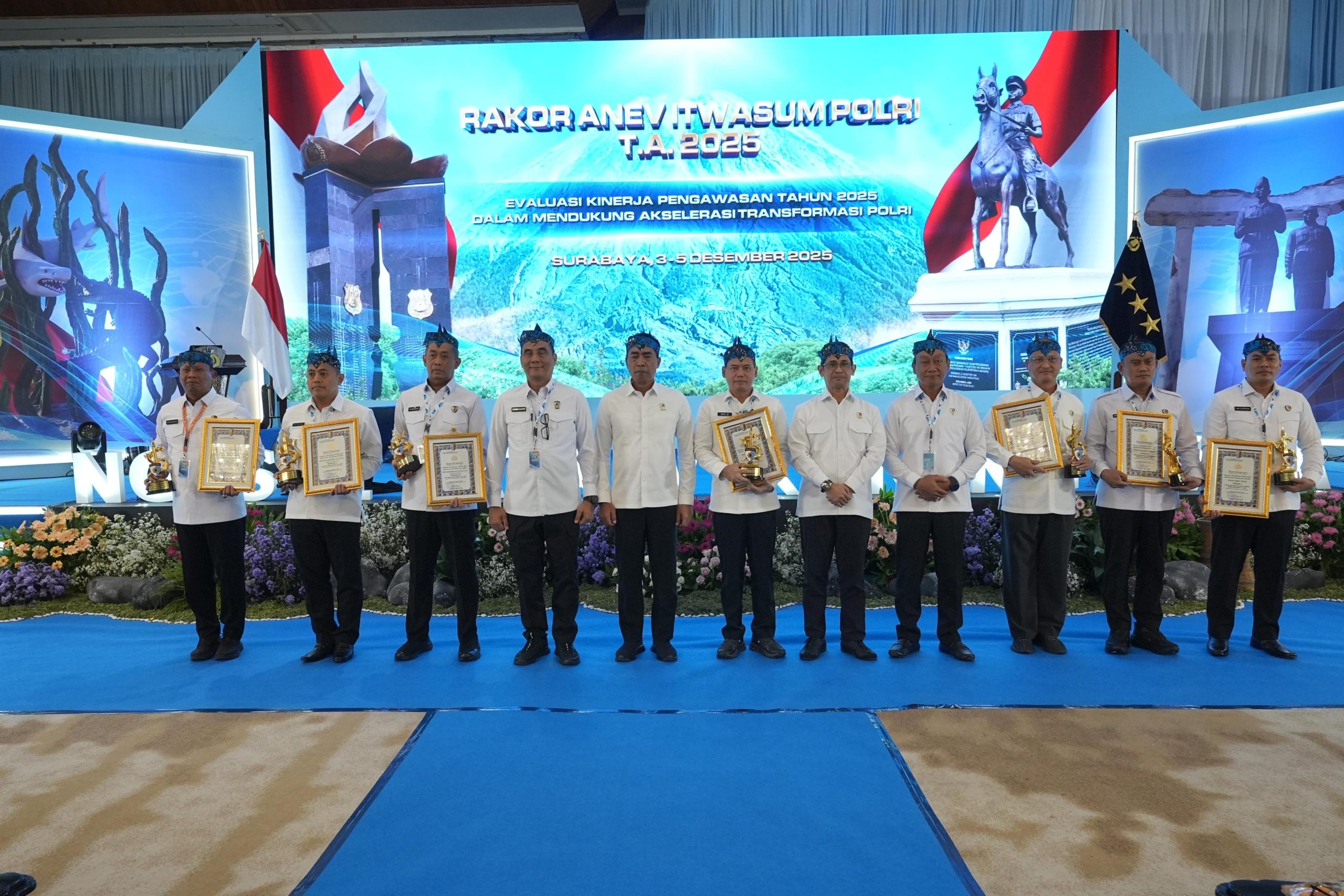 Piagam penghargaan yang ditandatangani oleh Inspektur Pengawasan Umum (Irwasum) Polri Komjen Pol Drs Wahyu Widada, M.Phil., itu diserahkan dalam kegiatan Rapat Koordinasi (Rakor) Analisa dan Evaluasi (Anev) Inspektorat Pengawasan Umum (Itwasum) Polri Tahun 2025, yang digelar pada hari Jumat 28/11/2025, di Surabaya, Jawa Timur.