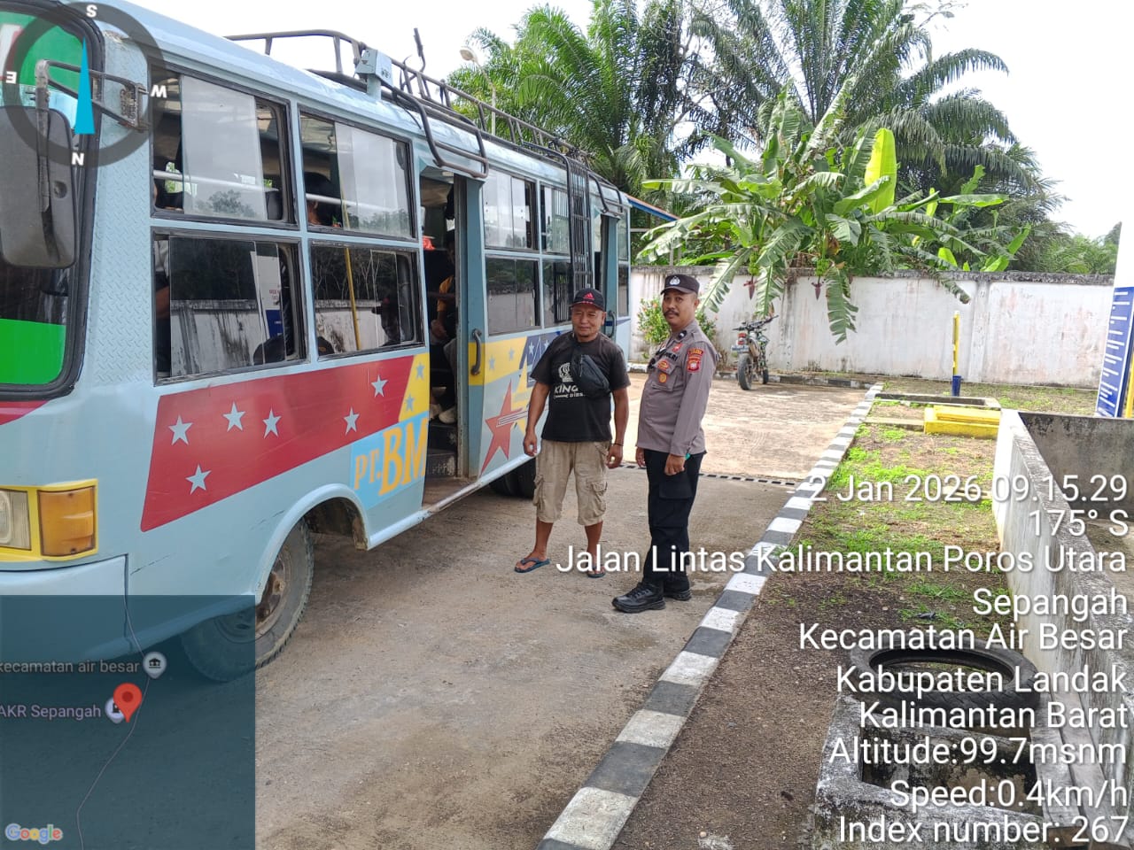 Kegiatan tersebut berlangsung pada Jumat (2/1/2026) di Jalan Lintas Kalimantan Poros Utara, Kecamatan Air Besar, Kabupaten Landak. Dalam patroli itu, petugas menyambangi sebuah bus yang sedang berhenti dan berinteraksi langsung dengan sopir serta penumpang.