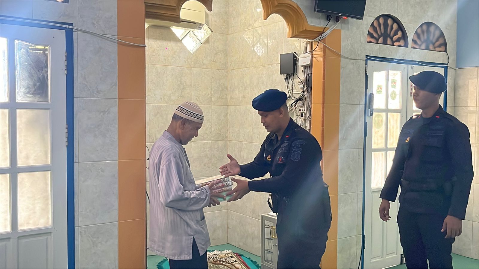 Bantuan berupa lima mushaf Al-Qur’an tersebut diserahkan langsung oleh personel Batalyon A Pelopor kepada pimpinan Mushola Al Huda, H. Harianto, sebagai bentuk kepedulian terhadap sarana ibadah masyarakat.
