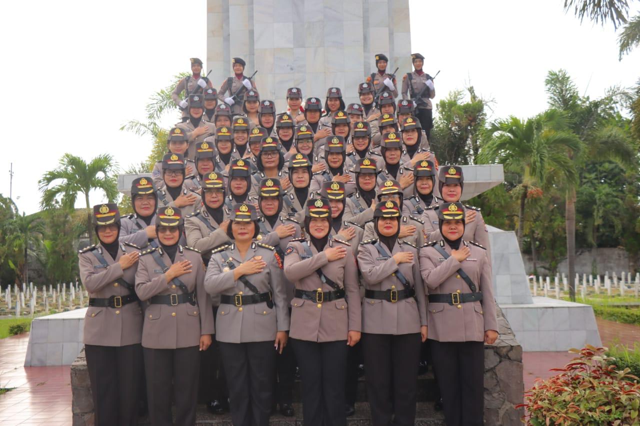 Jajaran Polwan Polda Lampung melaksanakan kegiatan ziarah dan tabur bunga di Taman Makam Pahlawan (TMP) pada Kamis, 28 Agustus 2025.