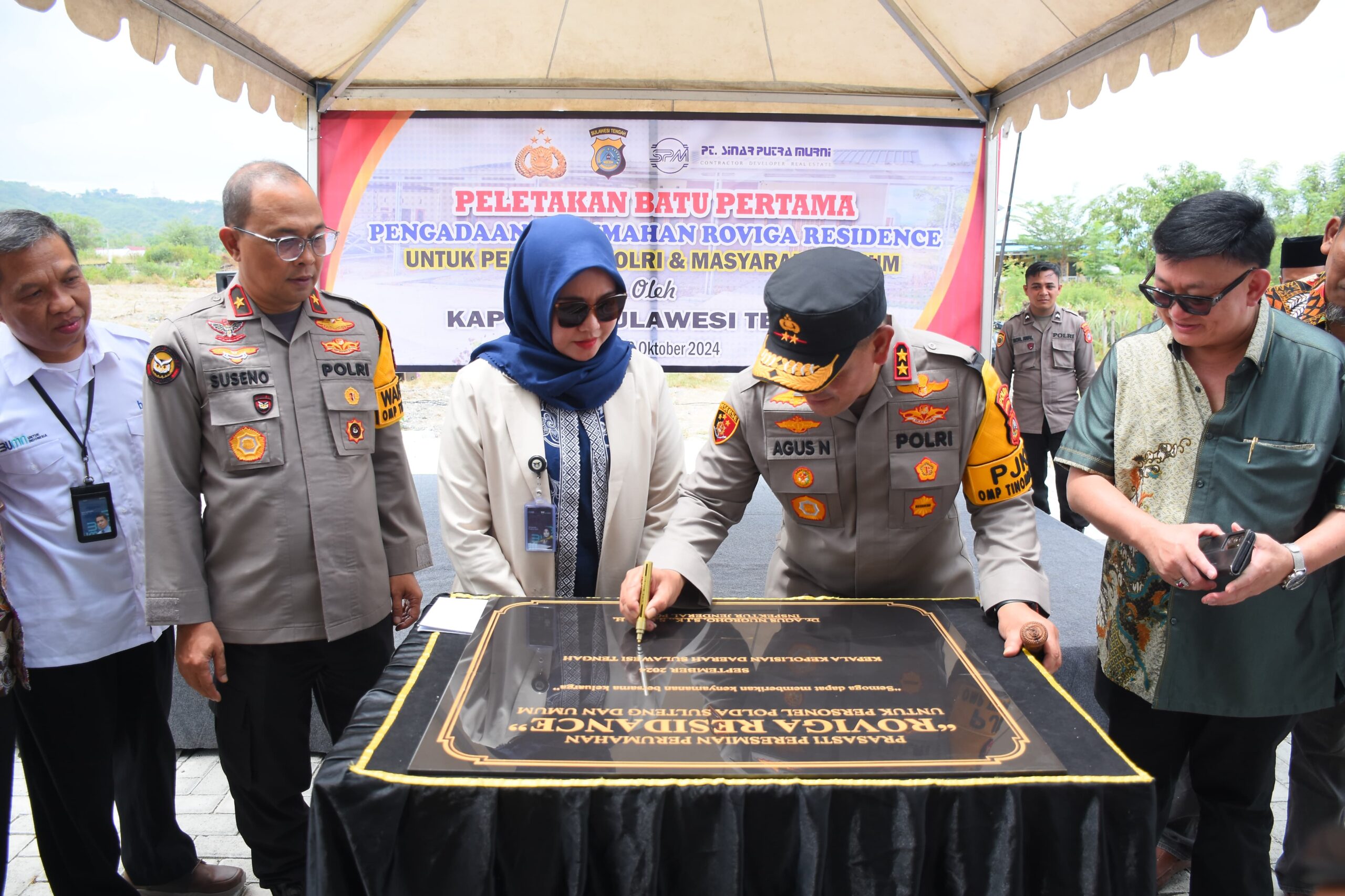 Peletakan batu pertama pembangunan perumahan “Roviga Residance” dilakukan Kapolda Sulteng Irjen Pol Dr. Agus Nugroho di Jalan Untad I, Kota Palu, Rabu (2/10/2024).