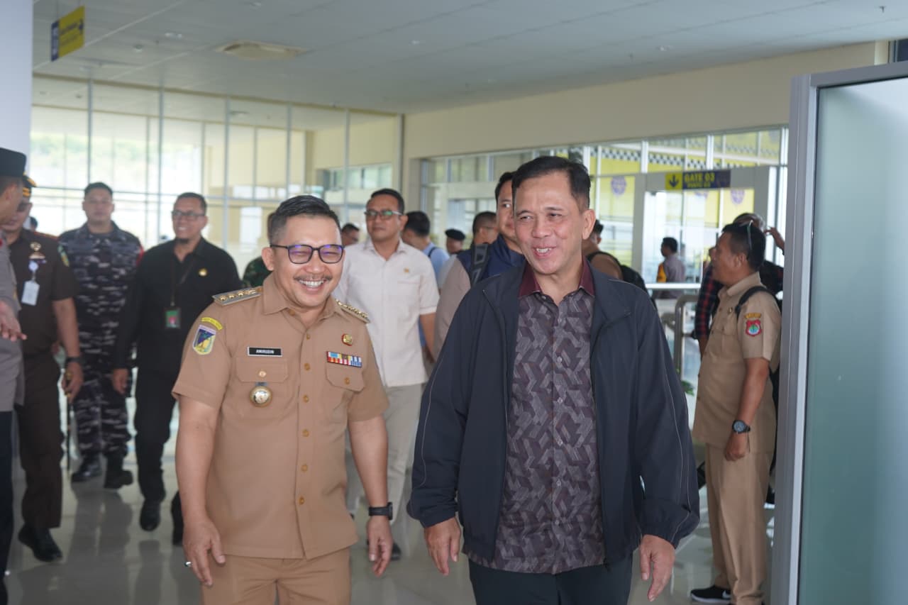 Kapolda Sulteng bersama rombongan tiba di Kabupaten Banggai menggunakan maskapai Batik Air dan mendarat di Bandara Syukuran Aminuddin Amir, Luwuk.