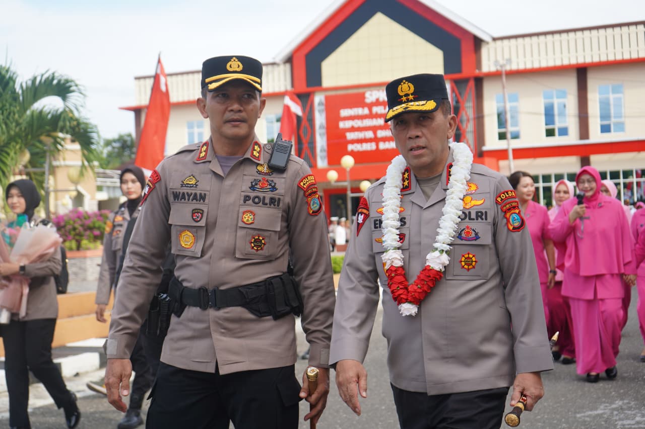 Kedatangan Kapolda Sulteng bersama rombongan disambut langsung oleh Kapolres Banggai Wayan Wayracana Aryawan bersama Ketua Bhayangkari Cabang Banggai Made Wayan di pintu masuk Mapolres Banggai dengan prosesi penyambutan penuh kehangatan.