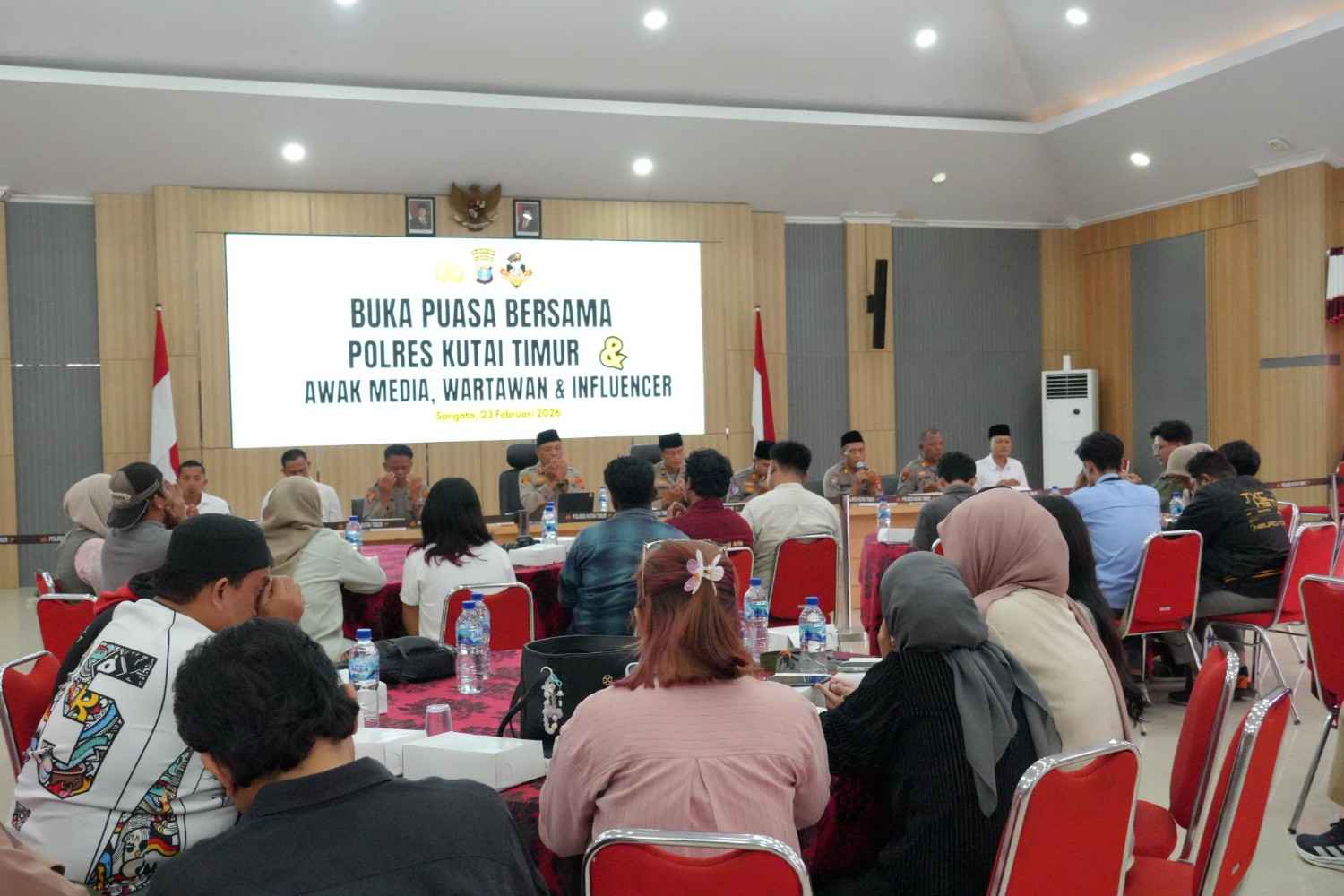 Kutai Timur – Polres Kutai Timur (Kutim) menggelar acara buka puasa bersama dengan puluhan awak media, wartawan, dan influencer di Sangatta, yang berlangsung di Auditorium Polres Kutim, Senin (23/02/2026).
