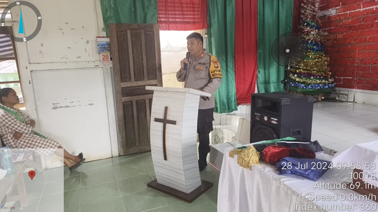 Polres Landak ~ Polda Kalbar ~ Sie Humas ~ Dalam kunjungan Kapolres Landak, AKBP Siswo Dwi Nugroho, S.H., S.I.K., melaksanakan kegiatan silahturahmi serta memberikan himbauan di Gereja PPIK Timotius Ngabang pada hari Minggu. Kegiatan tersebut diakhiri dengan sesi foto bersama, ” Minggu (28/7/2024)