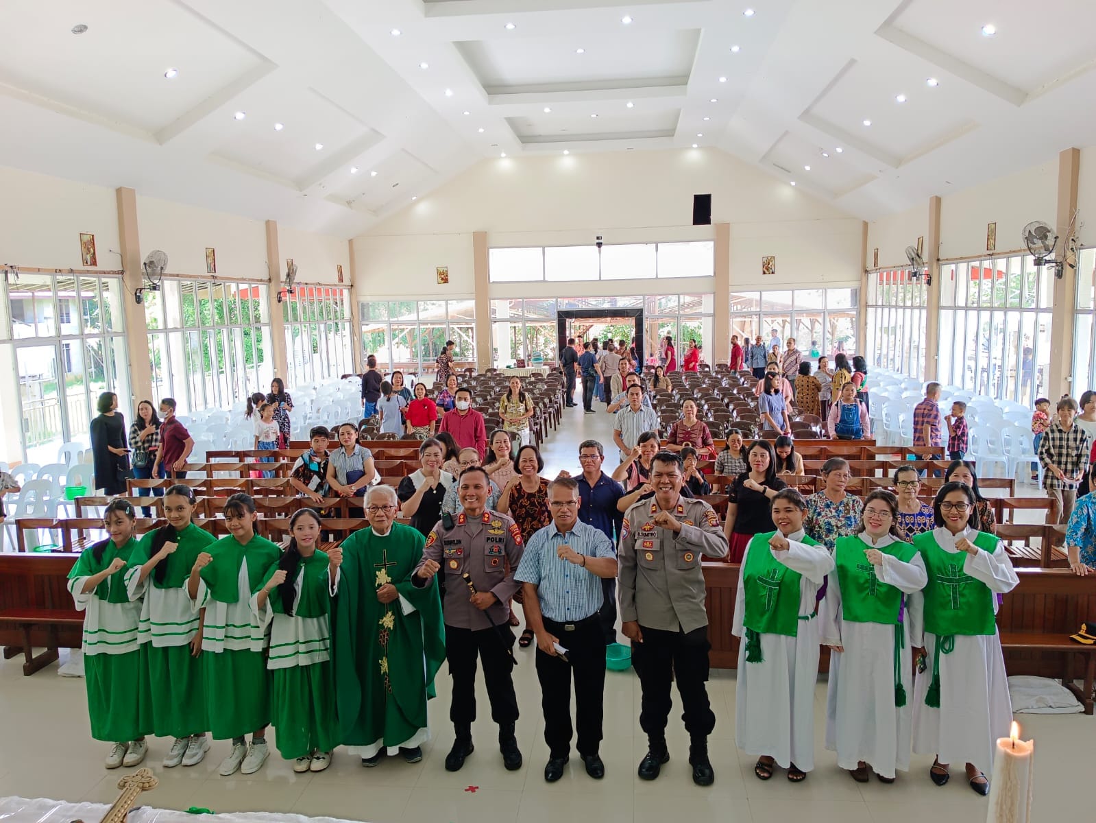 Polres Landak ~ Polda Kalbar ~ Sie Humas ~Dalam upaya mempererat tali persaudaraan dan menjaga kedamaian menjelang Pemilihan Kepala Daerah (Pilkada), Kapolres Landak AKBP Siswo Dwi Nugroho, S.H., S.I.K., bersama Kasat Binmas Polres Landak, IPTU Bambang Sumitro, melakukan kunjungan ke Gereja Salib Suci Ngabang. Kunjungan ini disambut hangat oleh Pastor Samuel Djumen OFM.Cap bersama pengurus serta jemaat Gereja Salib Suci Ngabang, ” Minggu (25/8/2024)