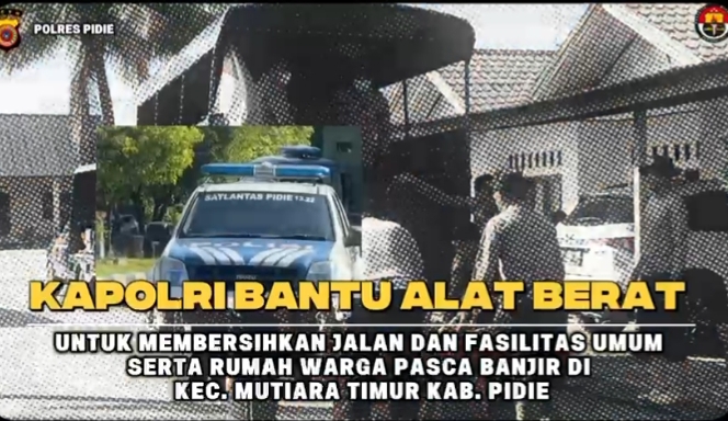 Bantuan dari Kapolri tersebut berupa dua unit alat berat, yakni satu unit wheel loader dan satu unit excavator, serta dua unit mobil dump truck. Alat-alat tersebut dikerahkan oleh Polres Pidie melalui Posko Tanggap Darurat Bencana untuk membersihkan fasilitas umum dan rumah warga serta gundukan tanah dan lumpur yang menutupi badan Jalan di Gampong Jojo menuju Gampong Tiba Mesjid Kecamatan Mutiara Timur.