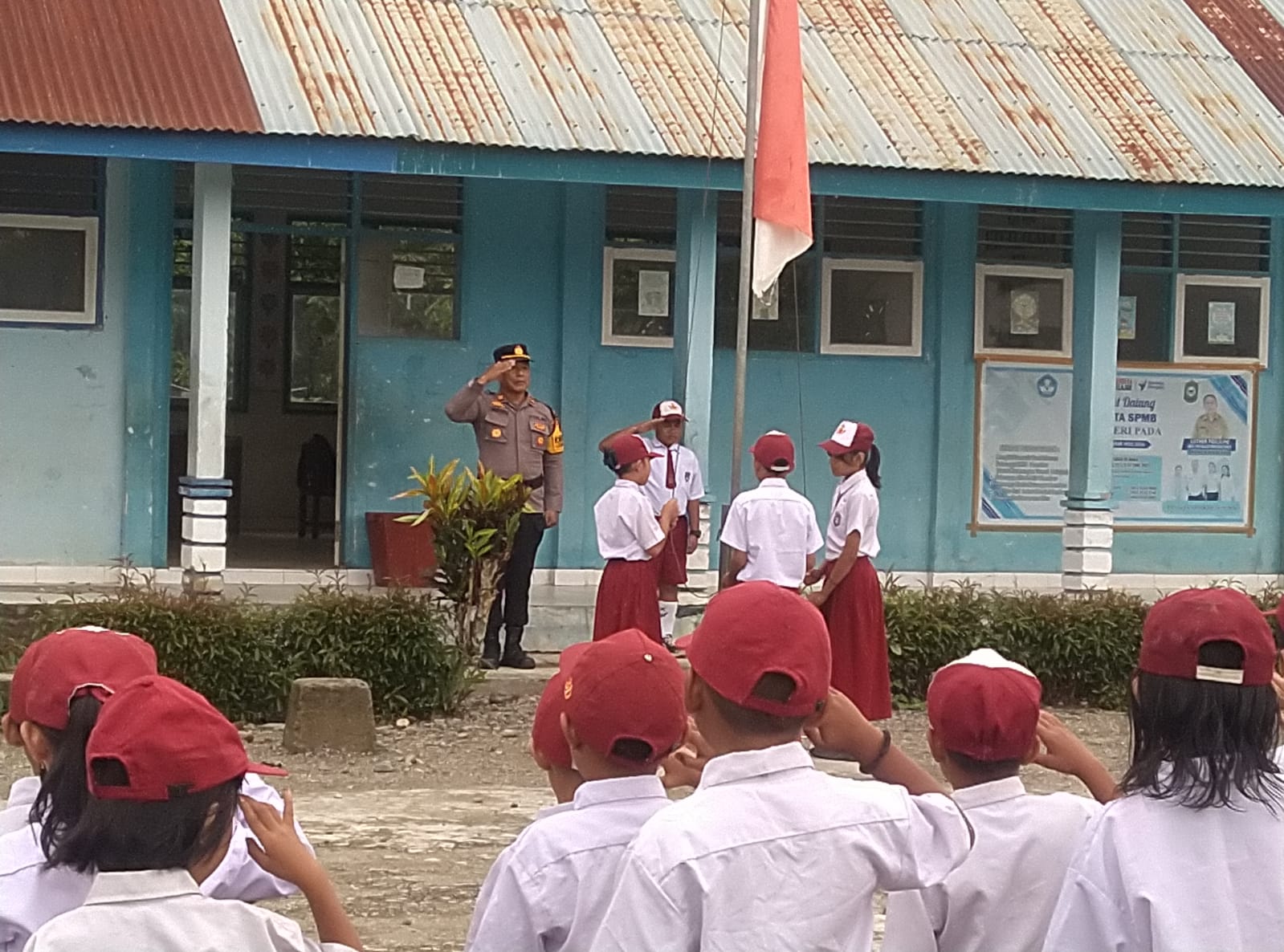 Lore Selatan – Kapolsek Lore Selatan, IPTU I Made Putra Yasa, S.H., bertindak sebagai pembina upacara dalam kegiatan rutin upacara bendera yang dilaksanakan di SDN Pada, Kecamatan Lore Selatan, Senin pagi (13/4/2026) pukul 07.00 WITA.