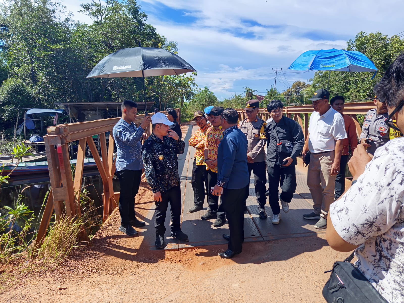 “ Dalam sambutannya pak Gubernur mengatakan bahwa kunjungan ini dalam rangka untuk meninjau dan mengetahui Infrastruktur Jembatan Desa Sungai Nanjung yang mengalami kerusakan sehingga kedepannya akan dilakukan perbaikan dan peningkatan struktur jembatan sehingga kondisi jembatan lebih baik dan dapat di akses seluruh lapisan warga masyarakat.” ujar AKP Jumadi Hutabarat.