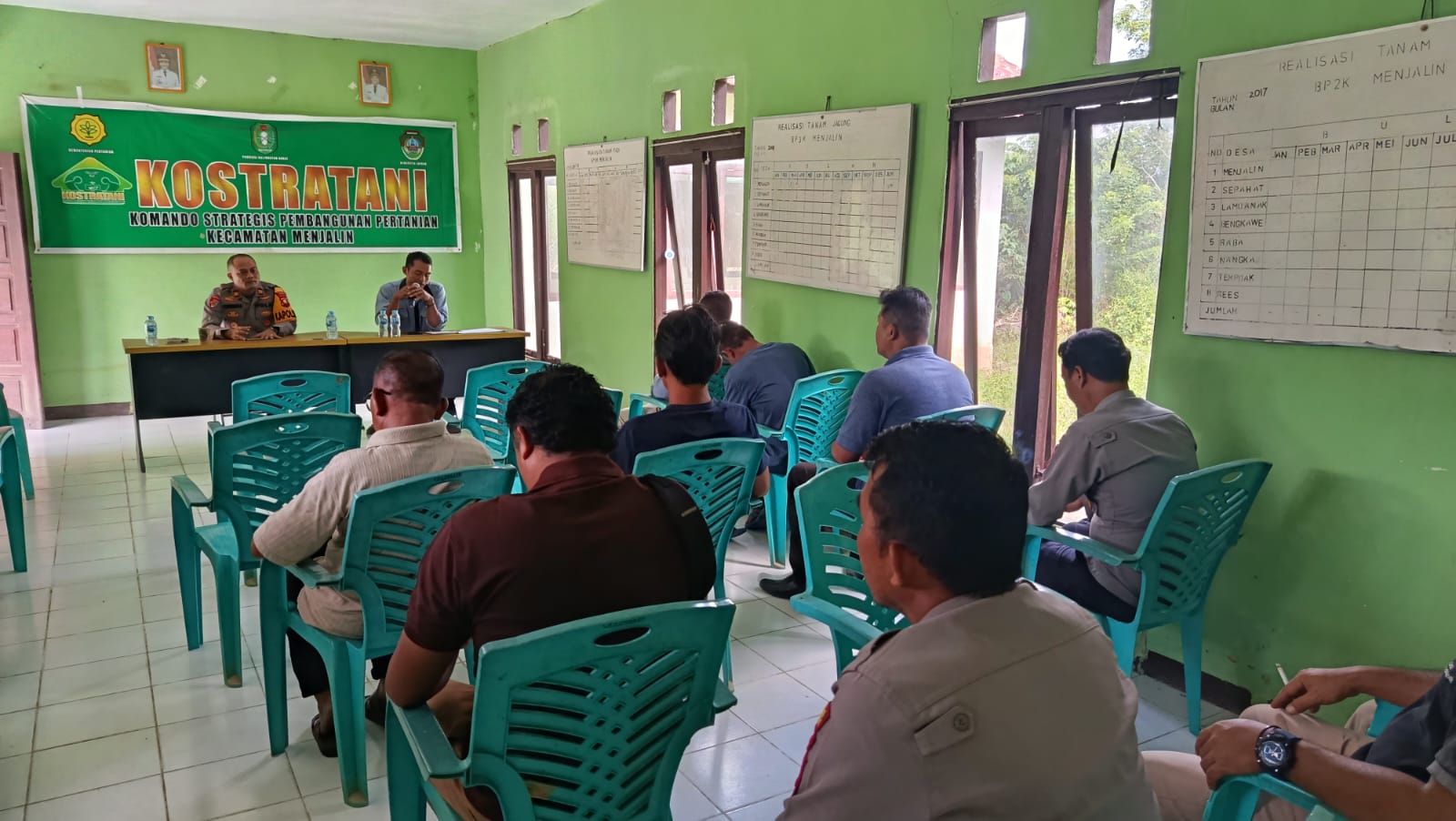 Pada Rabu 06 Agustus 2025, sekitar pukul 09.30 Wib, Polsek Menjalin Polres Landak Polda Kalbar hadiri undangan rapat koordinasi Komando Strategis Pembangunan Pertanian (Kostratani) Kecamatan Menjalin Kabupaten Landak Tahun 2025, yang bertempat di aula Balai Penyuluhan Pertanian Kecamatan Menjalin.