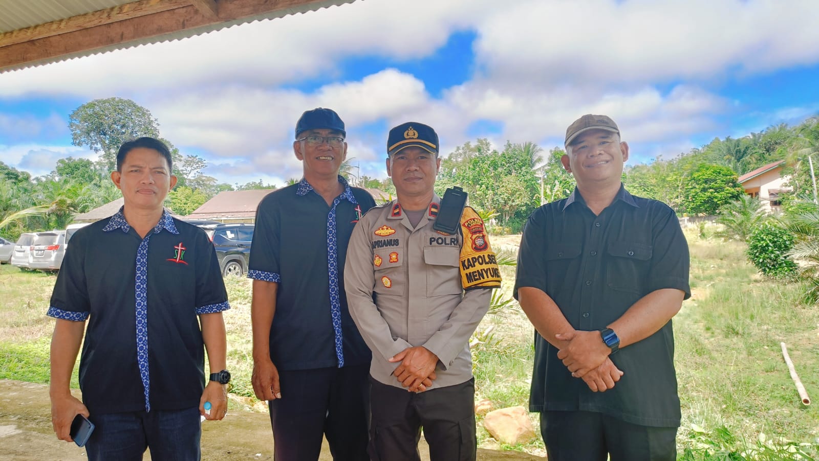 Terlihat Ipda Aprianus Sabari Tampe,SH. Melaksanakan Coolling System dengan bapak Bobi,Triono dan Bapak Heroes selaku Dosen STTB (Sekolah tinggi teologia Borneo) di Desa Ansang Kecamatan Menyuke.