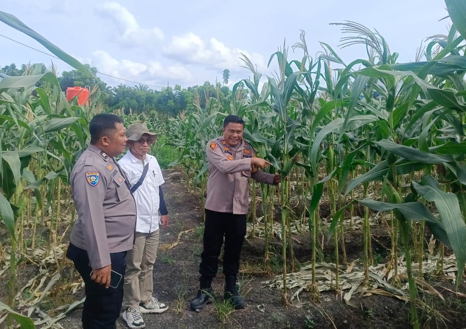 Kapolsek Mukok menyampaikan bahwa pengecekan lahan jagung dilakukan untuk memastikan pengelolaan pertanian berjalan dengan baik serta mampu memberikan kontribusi nyata dalam mendukung ketahanan pangan nasional, khususnya di wilayah Kabupaten Sanggau.