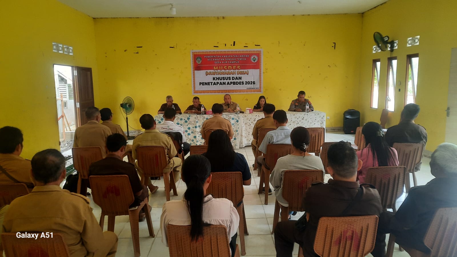 Polsek Sengah Temila ~Polres Landak ~ Polda Kalbar ~ Kapolsek Sengah Temila, AKP Ecep Maman Hermawan, S.H., M.Kn, menghadiri kegiatan Musyawarah Desa Khusus (Musdesus) dan Penetapan Anggaran Pendapatan dan Belanja Desa (APBDes) yang dilaksanakan di Aula Kantor Desa Aur Sampuk, Dusun Aur Sampuk, Desa Aur Sampuk, Kecamatan Sengah Temila, Kabupaten Landak, pada Senin (15/12/2025).