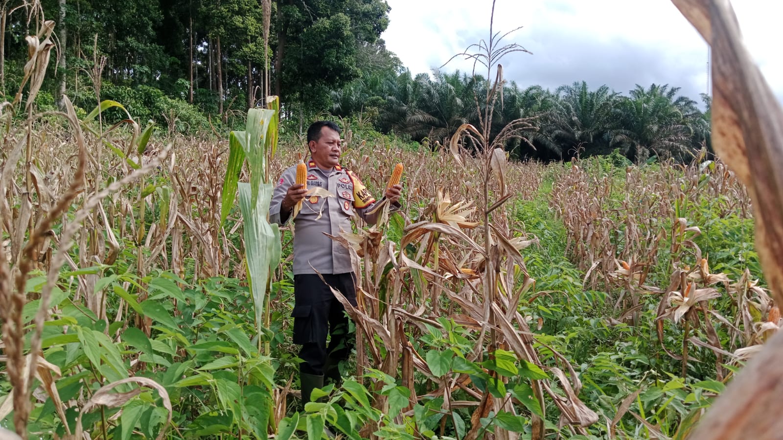 Lahan jagung tersebut ditanami pada 9 Juli 2025 dengan luas kurang lebih 1 hektare. Hingga saat ini, hasil panen masih dalam proses pengeringan sehingga jumlah produksinya belum dapat dipastikan.