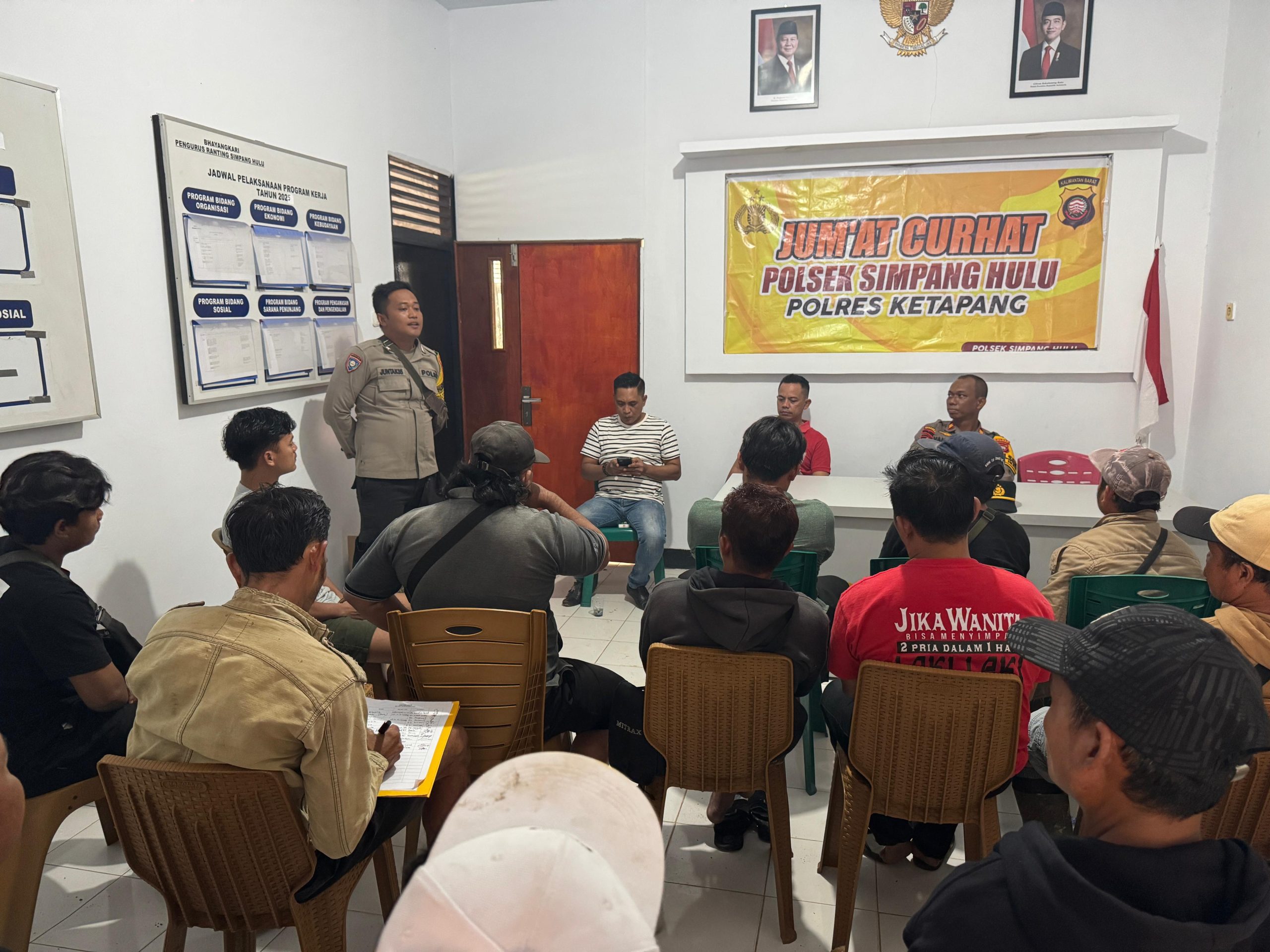 Ketapang, Polda Kalbar – Kapolsek Simpang Hulu Polres Ketapang, Iptu Vahrul Febrianto, melaksanakan kegiatan Jumat Curhat bersama masyarakat Desa Kualan Tengah, Kecamatan Simpang Hulu, Kabupaten Ketapang, Jum’at 12 Desember 2025.