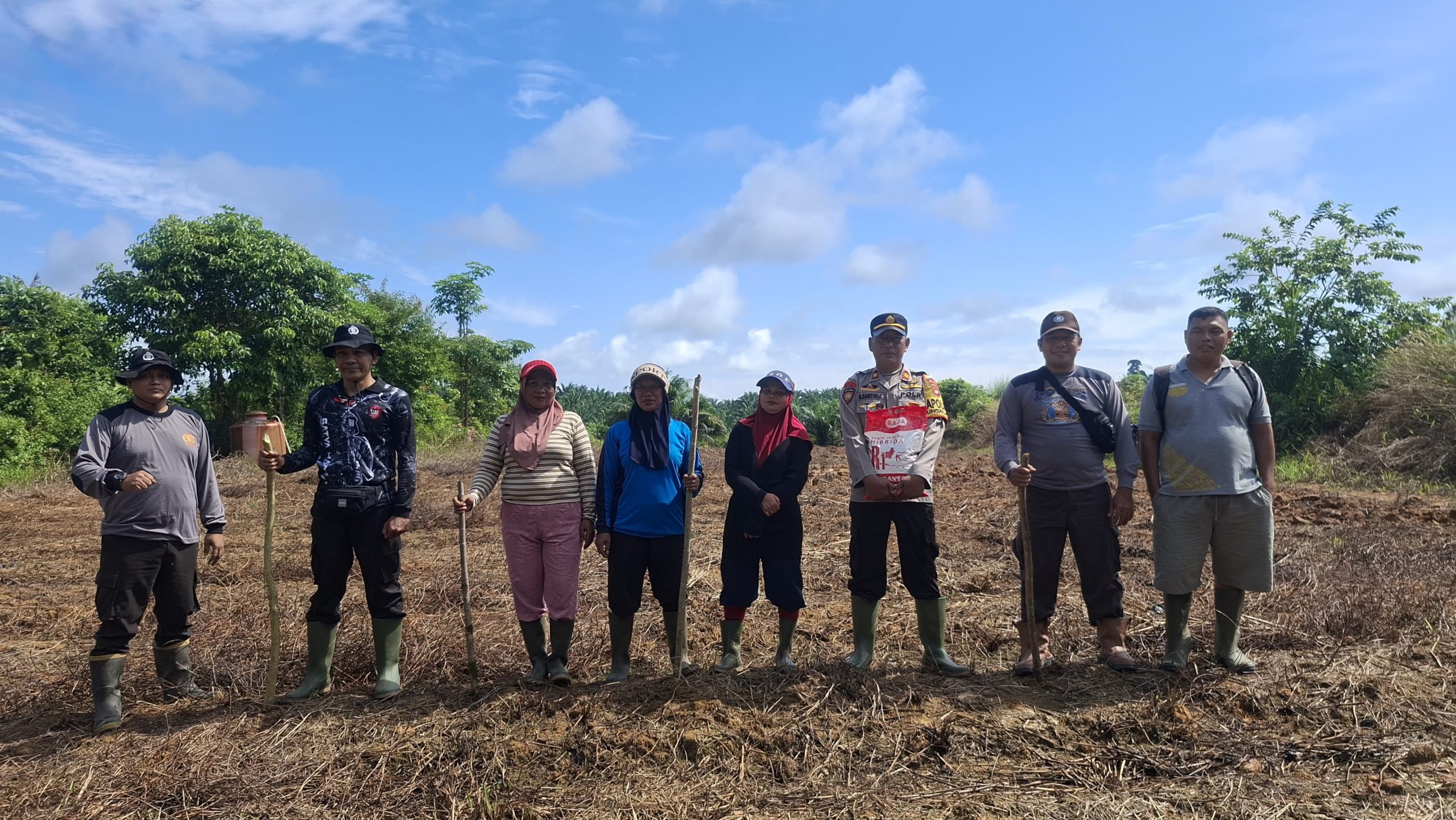 Ketapang, Polda Kalbar – Untuk mendukung program ketahanan pangan nasional, Kapolsek Sungai Laur Iptu Selamet Santoso bersama anggota Bhabinkamtibmas dan karyawan PT. Mulia Bakti Kahuripan (MBK) melaksanakan kegiatan penanaman jagung hibrida pada Kamis, 16 April 2026.