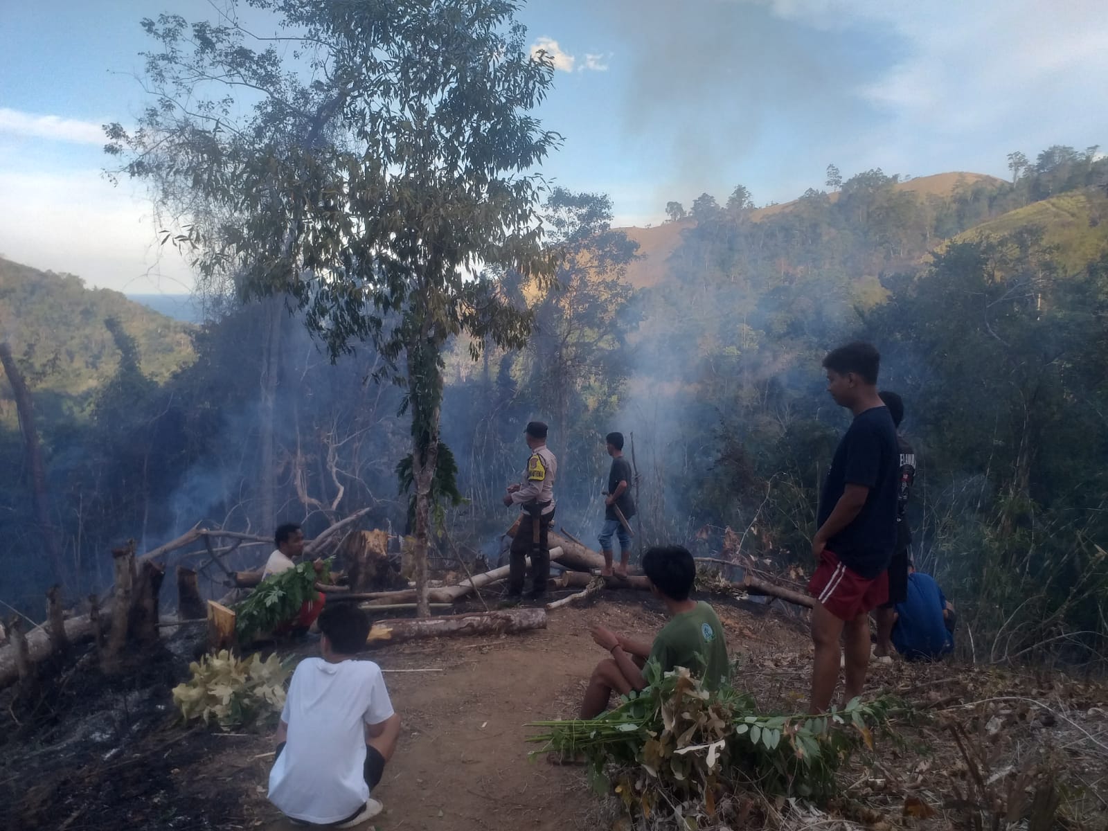Sekitar sembilan orang warga turut berupaya memadamkan api secara manual menggunakan alat seadanya, seperti batang kayu. Namun hingga pukul 18.30 WITA, api belum berhasil dipadamkan sepenuhnya lantaran medan pegunungan yang terjal serta keterbatasan sumber air di lokasi.
