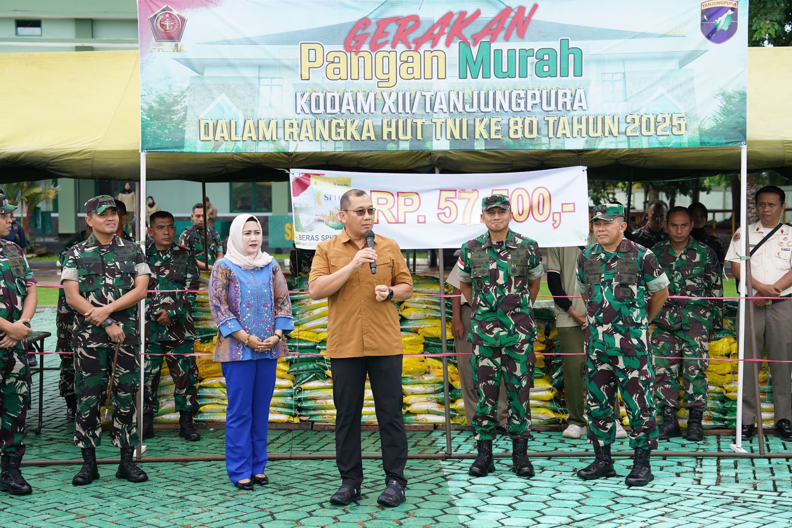 Wakapendam XII/Tpr, Letkol Inf Letkol Inf Agung W Palupi, S.I.P., menjelaskan, kegiatan Gerakan Pangan Murah ini bertujuan untuk memastikan ketersediaan pangan dengan harga terjangkau bagi seluruh masyarakat.