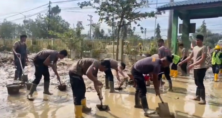 Kegiatan pembersihan dilakukan untuk memastikan lingkungan sekolah kembali bersih dan layak digunakan setelah terdampak banjir.